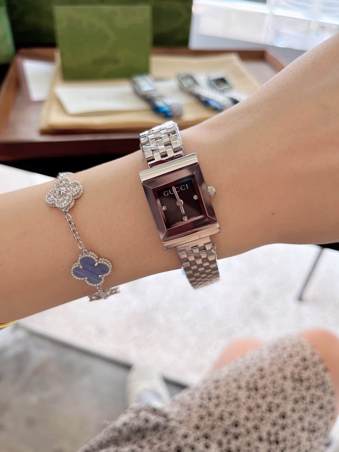 Be the first to review “Gucci G Frame Bracelet Watch Square Shape Silver In Black 20Mm Ya128507” Cancel reply