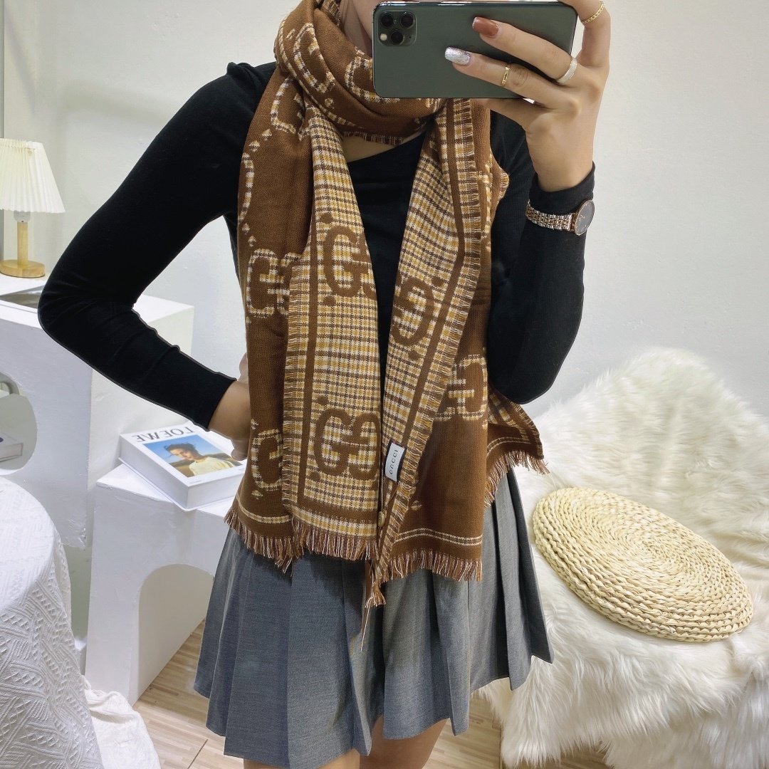 Be the first to review “Gucci Check Gg Wool Jacquard Scarf Brown 180Cm” Cancel reply