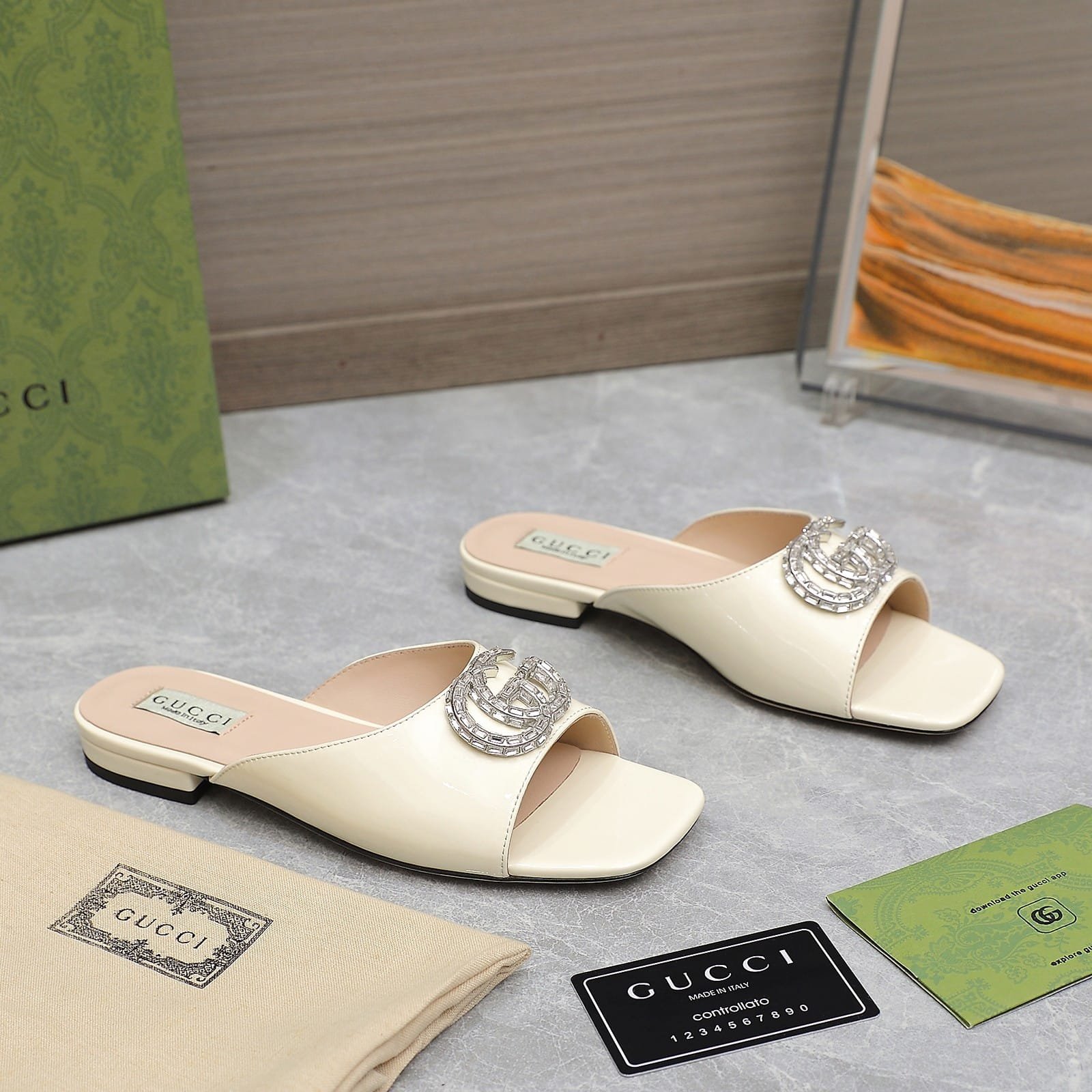 Be the first to review “Gucci Gg Crystal Slippers White” Cancel reply