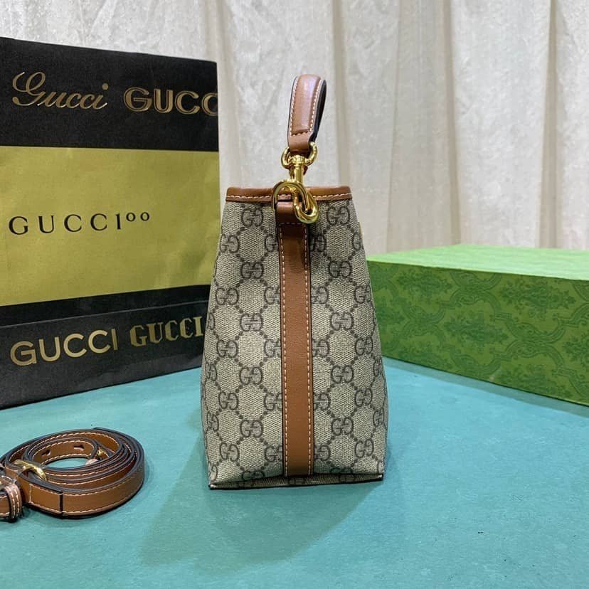 Gucci Gg Emblem Mini Bucket Bag Beige And Dark Brown 21Cm 815118 Fad6L 9758