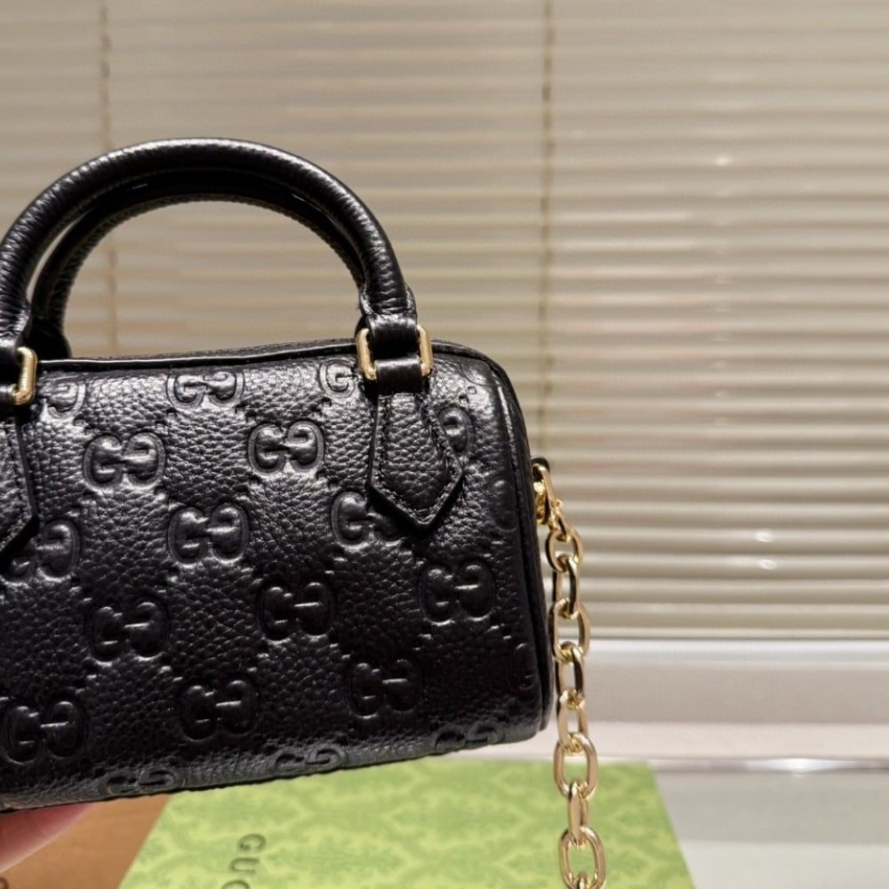 Replica 1:1 – Gucci GG Emblem Super Mini Top Handle Bag Black 16cm 815255 AAEEM 1000
