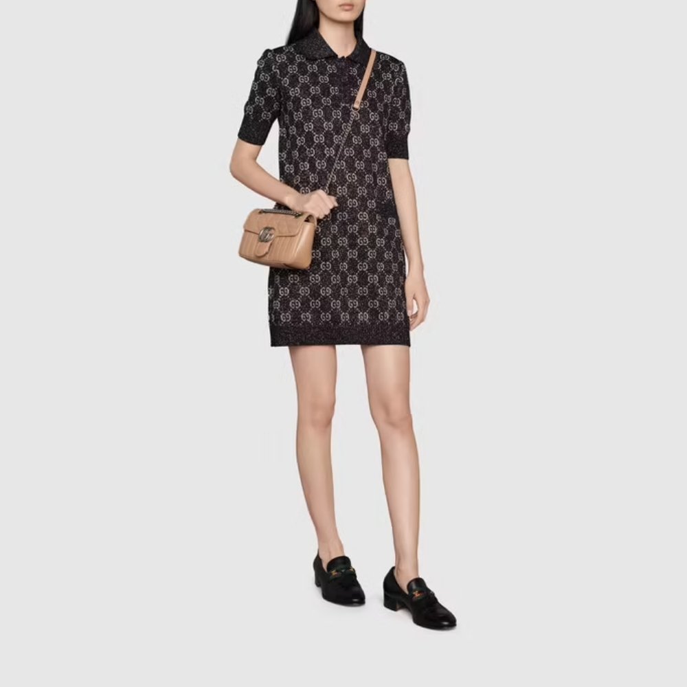 The GG Marmont mini shoulder bag, a beloved member of the Gucci Aria collection, explores the House’s most emblematic codes and symbols with a new geometric take on their signature finish.