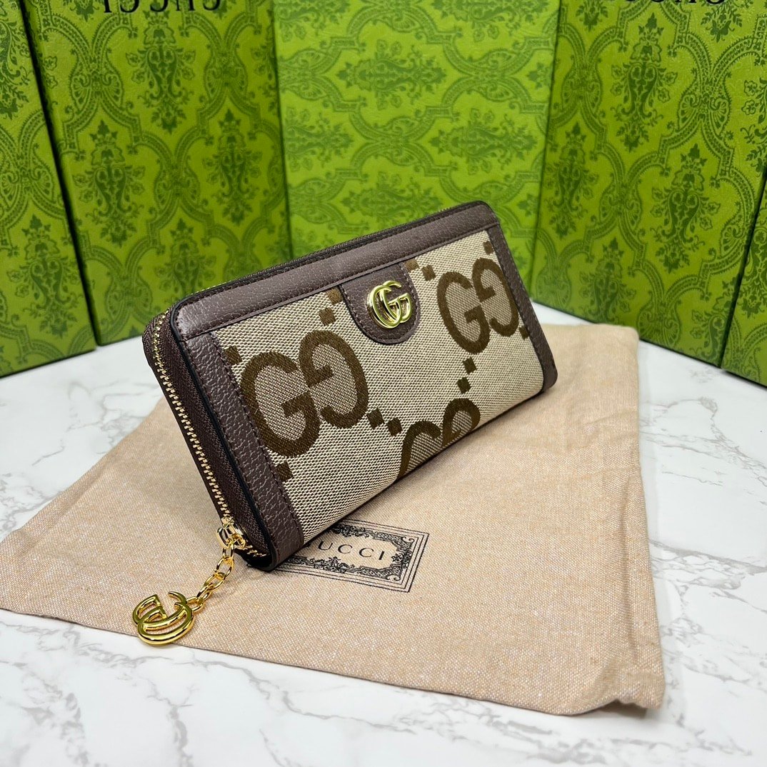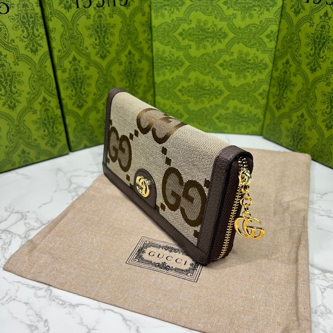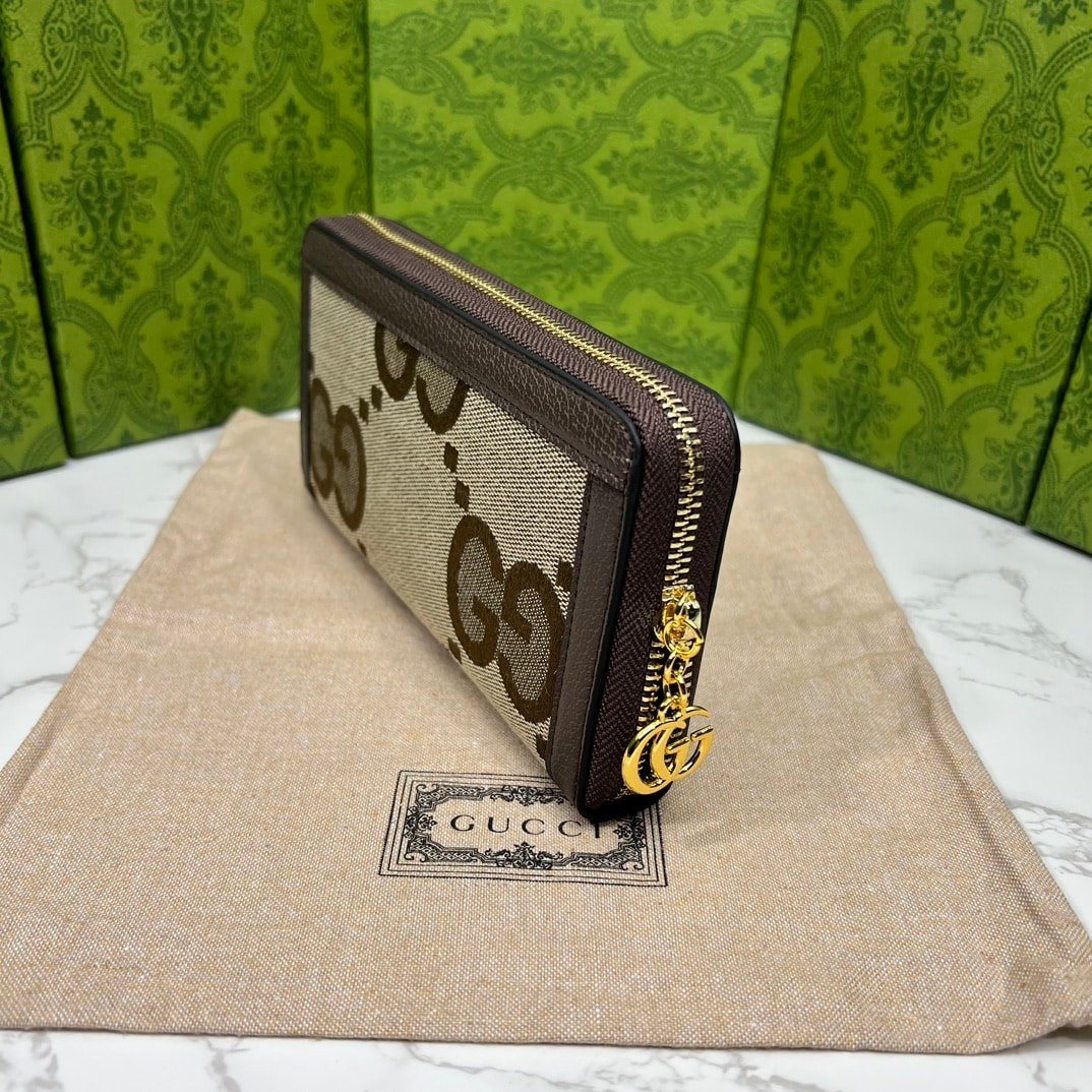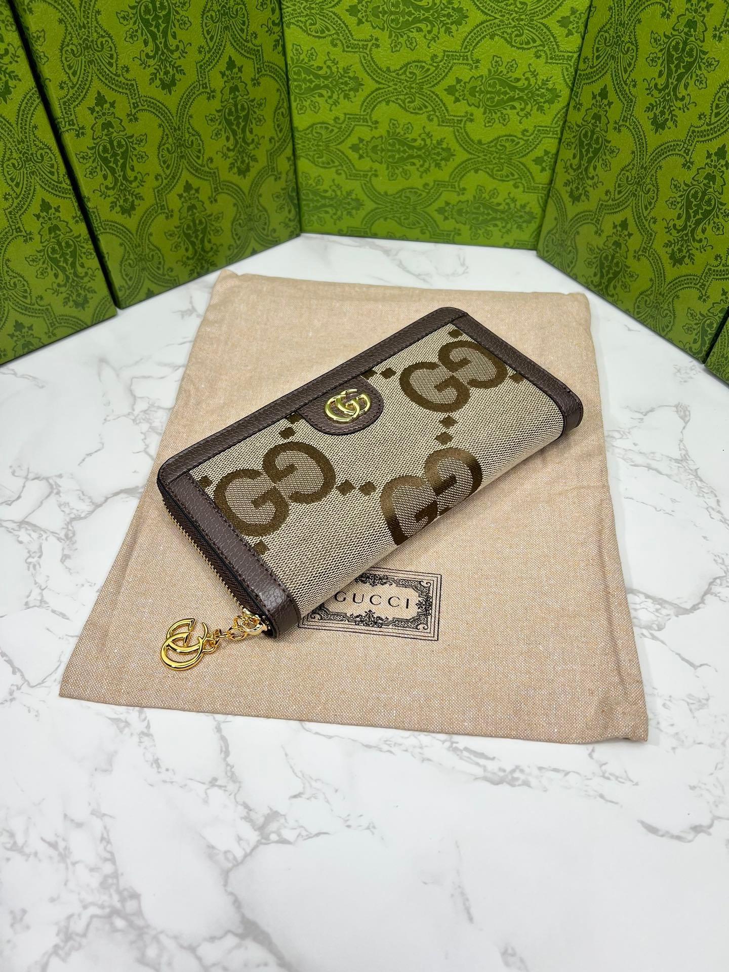 Gucci Monogram Canvas Zip Long Wallet Dark Brown 19.5Cm