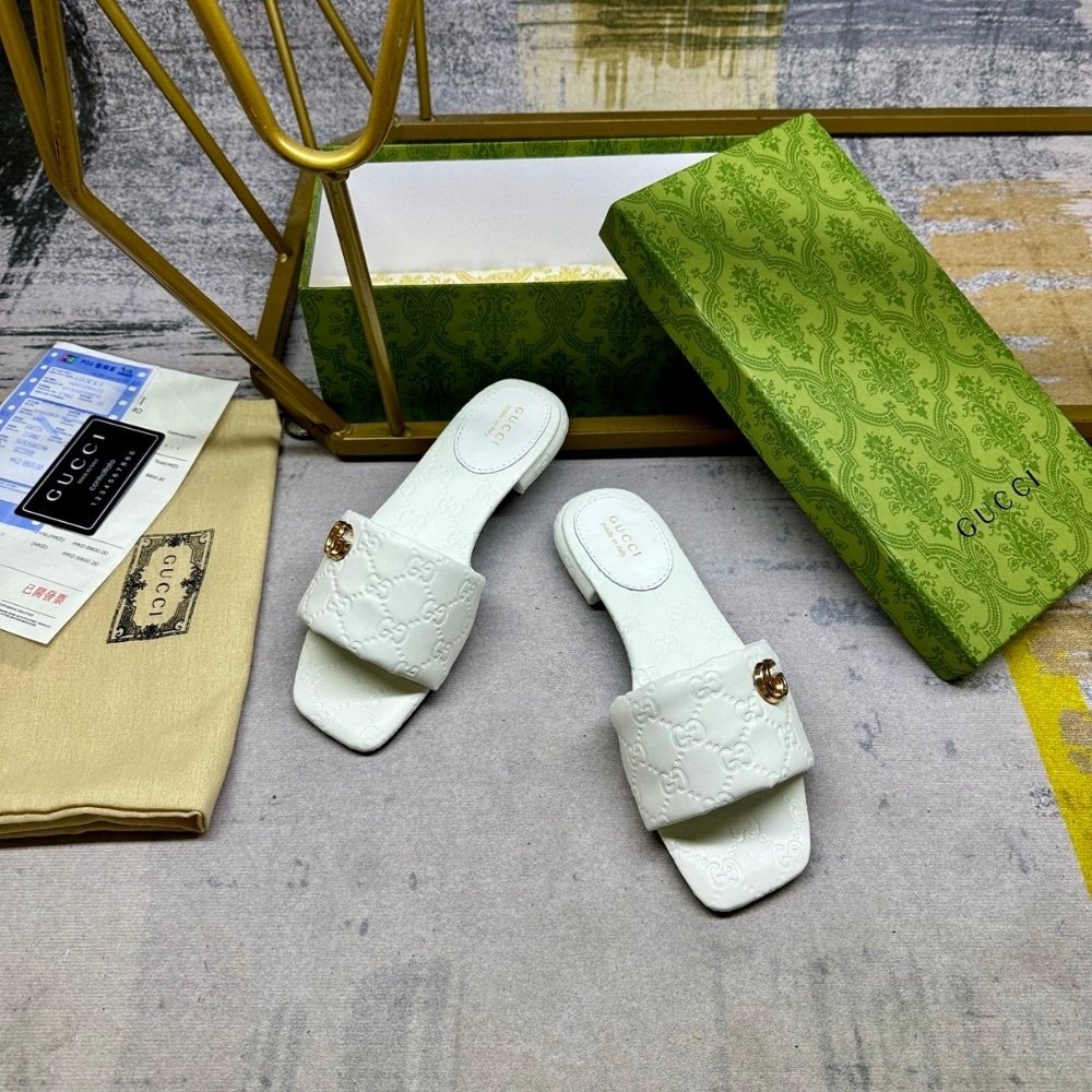 Gucci Women Slide Sandal With Double G Ivory 816330 Aaea2 9540