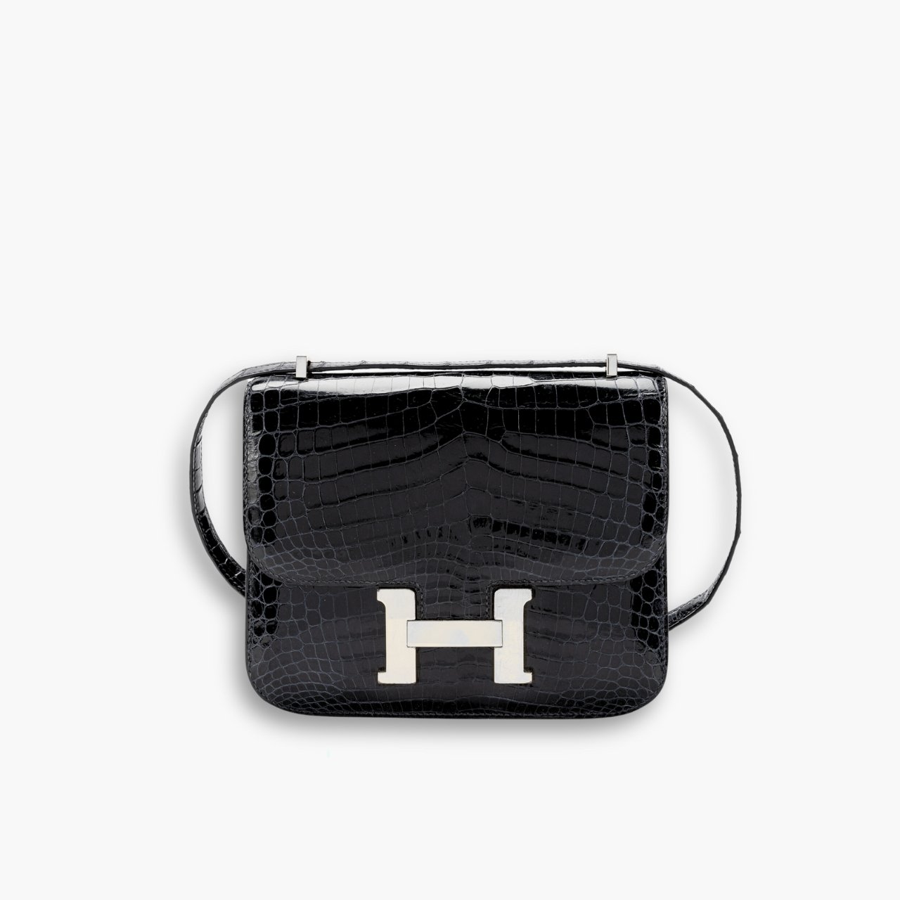 Hermès Constance in Shiny Alligator Black is a striking blend of luxury and elegance. Its sleek, glossy alligator leather creates a refined, statement-making look, while the iconic H clasp adds timeless appeal. A perfect choice for those seeking sophistication in a compact design.