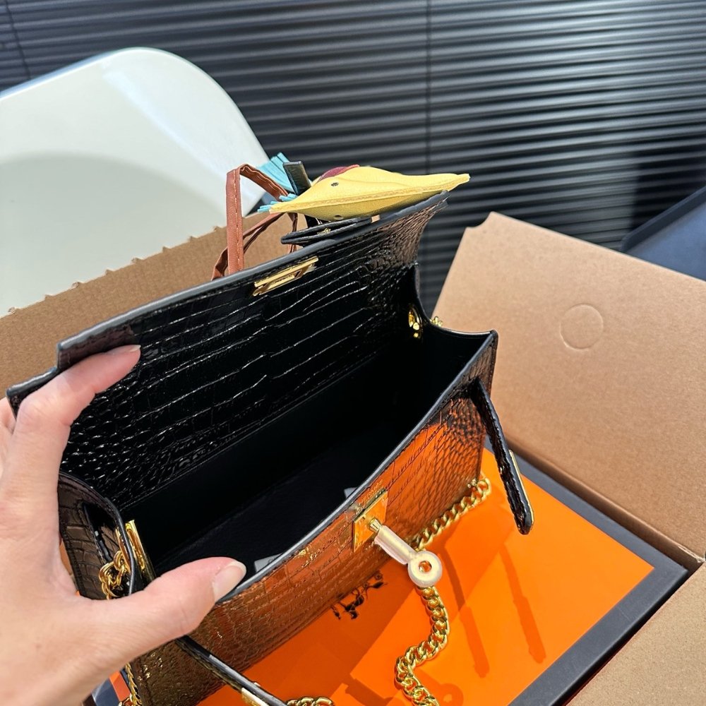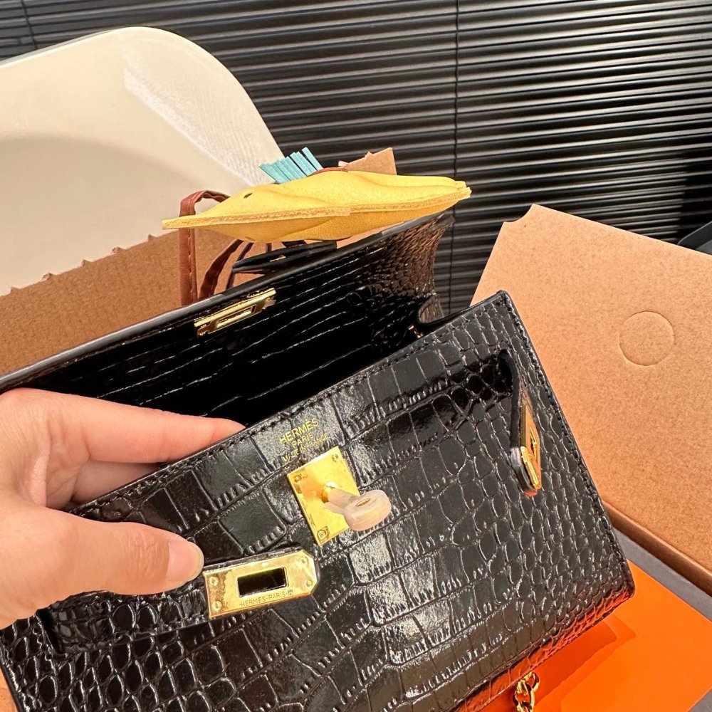 Replica 1:1 – Hermes Kelly Mini Pochette Shiny Alligator Black 21cm
