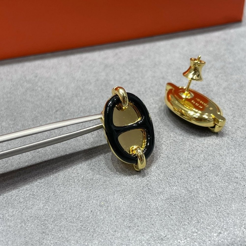 Hermes Mini Maillon Earrings Black