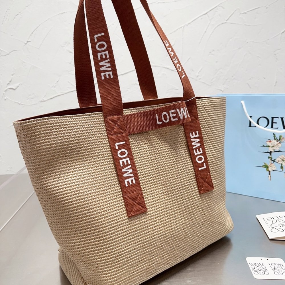 Replica 1:1 – Loewe Fold Shopper In Raffia Natural And Tan 35cm B507X23X04 2435