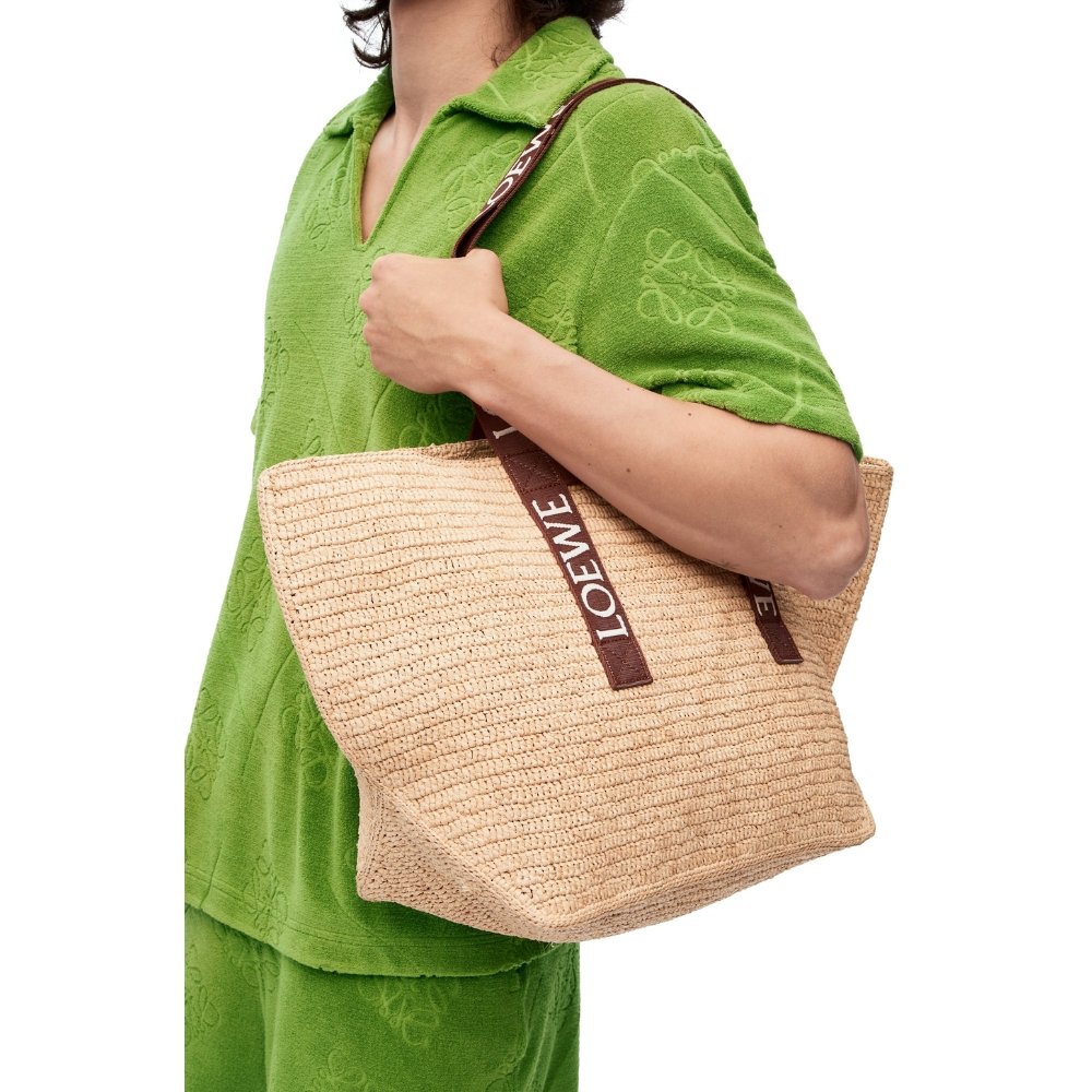 Loewe Fold Shopper In Raffia Natural And Tan 35cm B507X23X04 2435