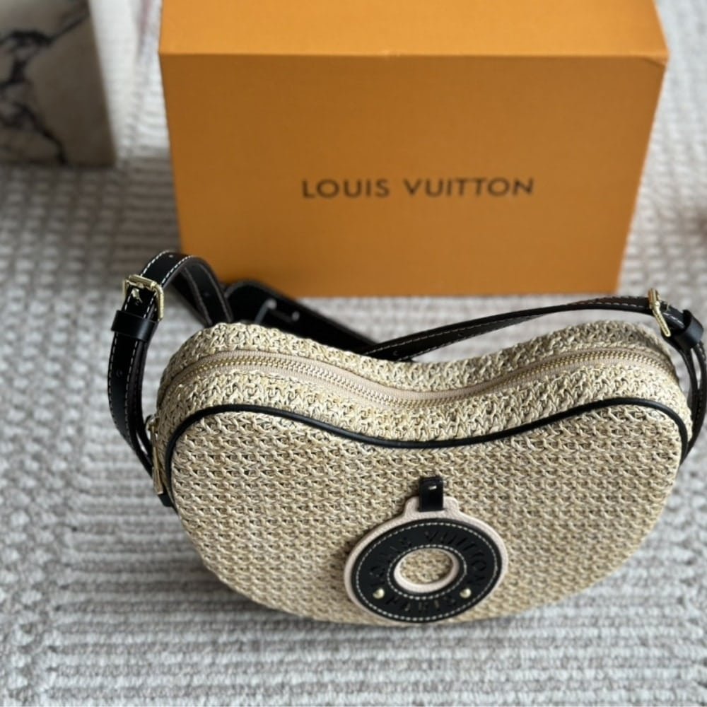 Crafted from natural raffia with leather trim, this 26cm LV Croissant bag blends effortless summer style with signature sophistication. The unique crescent shape and bold LV charm offer both fashion and function—perfect for seasonal elegance.