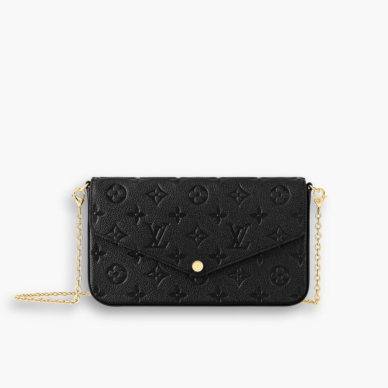 The Félicie Pochette is crafted from Monogram Empreinte leather embossed with Louis Vuitton’s iconic motif. With a modern envelope shape, the design is spacious with two separate compartments, one with a zipper and one with multiple card slots. The chain is removable for flexible carrying options.