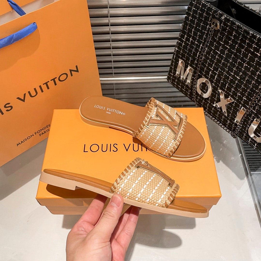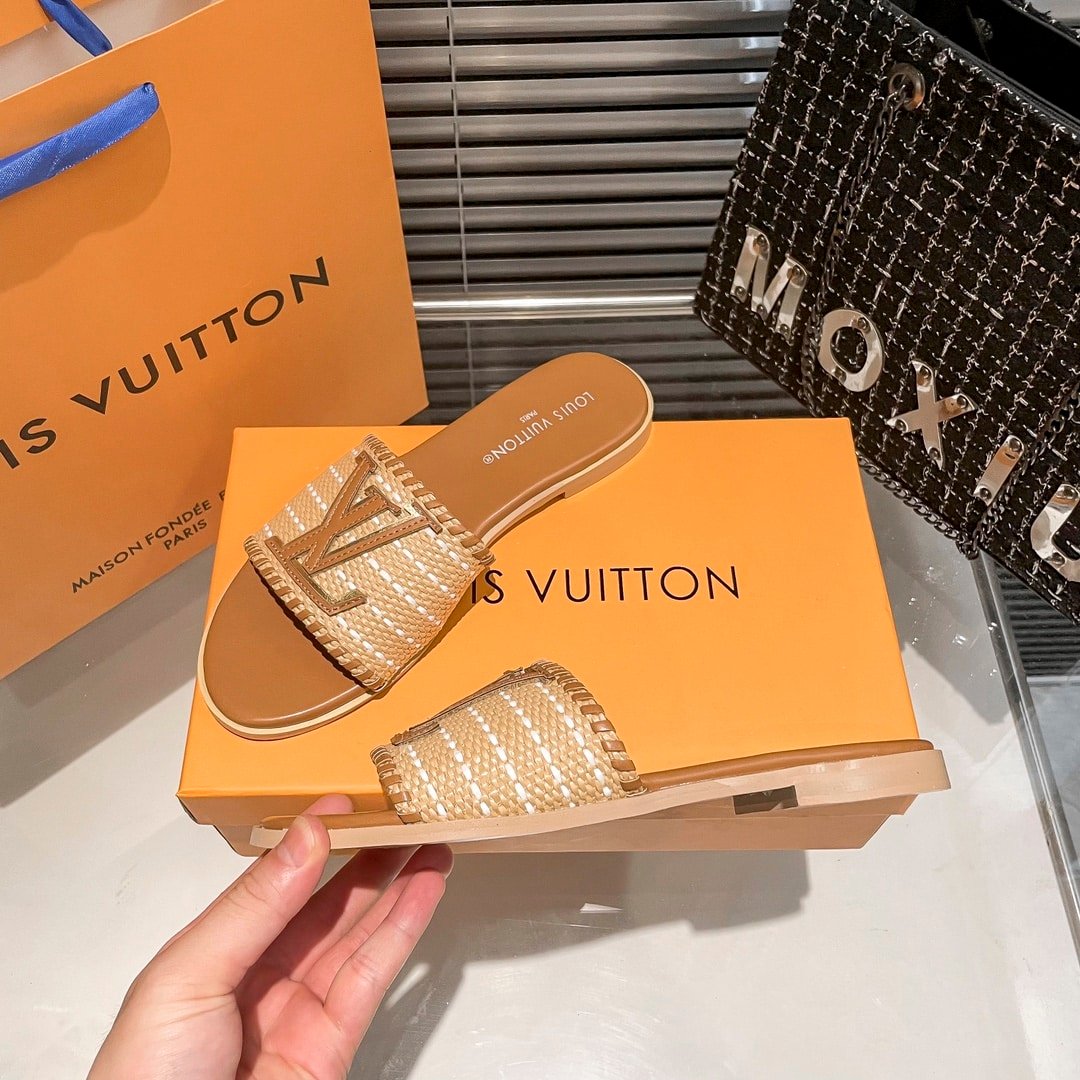 Louis Vuitton Lock It Flat Raffia Mules Brown