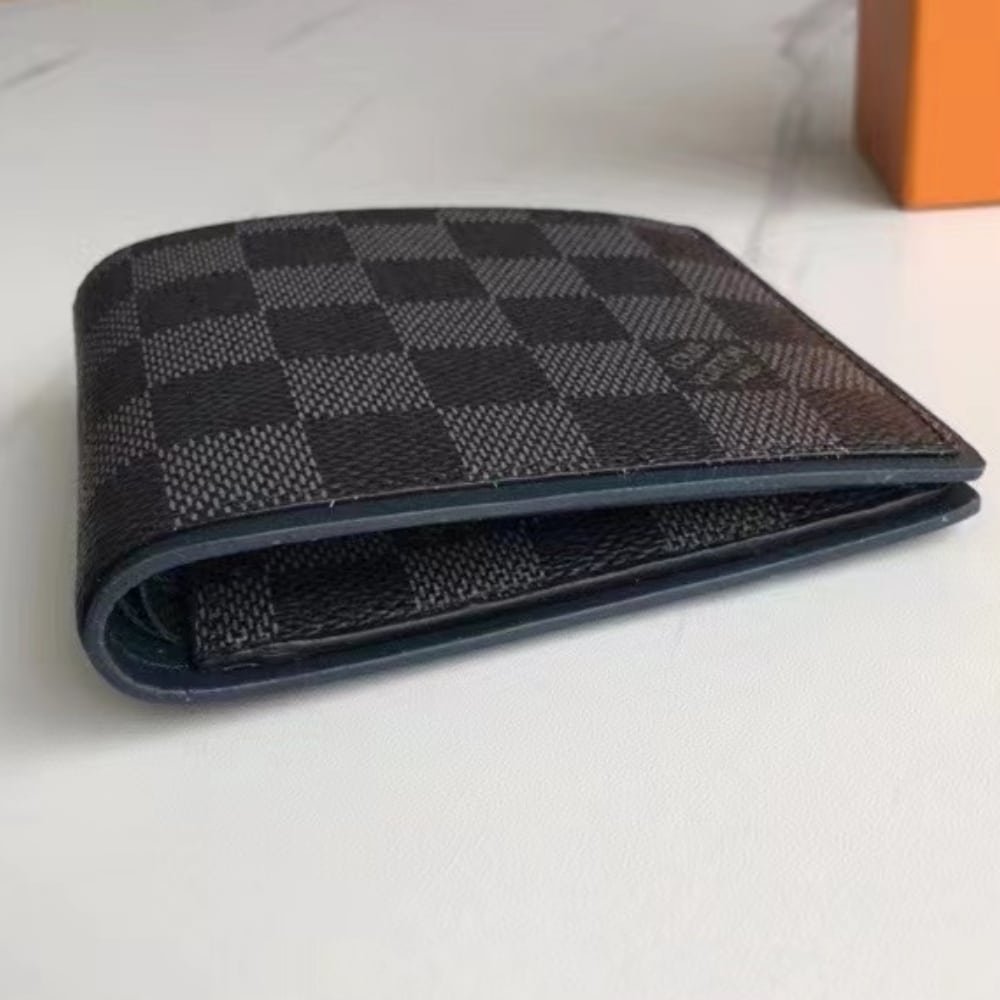 The Louis Vuitton Multiple Wallet Navy Blue 11cm (N63260) is a stylish and practical accessory crafted from Damier Graphite coated canvas. Featuring multiple card slots and compartments for cash and receipts, its compact design fits easily into pockets. A perfect blend of elegance and everyday functionality.