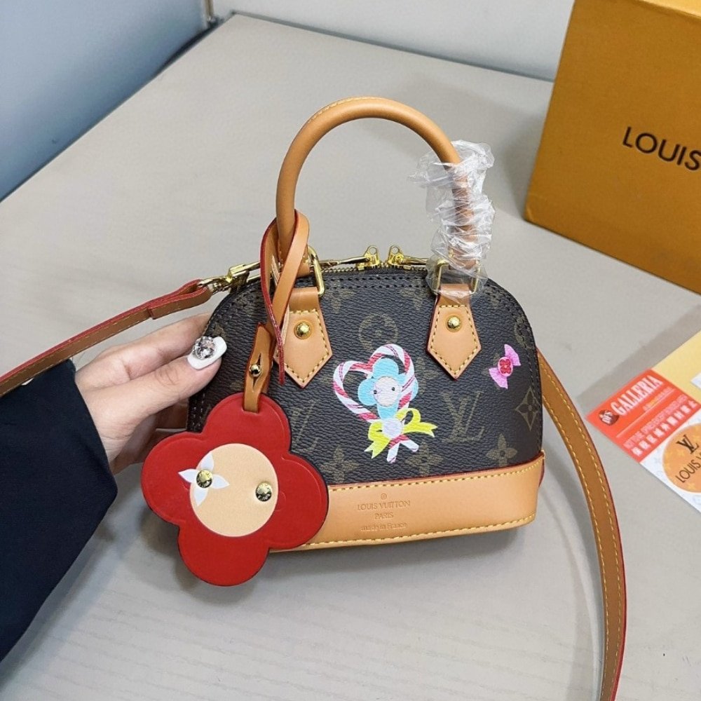The Candy Factory collection gives the Nano Alma bag a new look with a festive-inspired version. The bag features the Maison’s iconic Vivienne mascot, embellished with cute motifs. The Vivienne embellishment is outlined in Candy Red leather, matching the lining of the bag. Crafted from heritage Monogram Canvas, the design is a harmonious combination of classic and trendy.