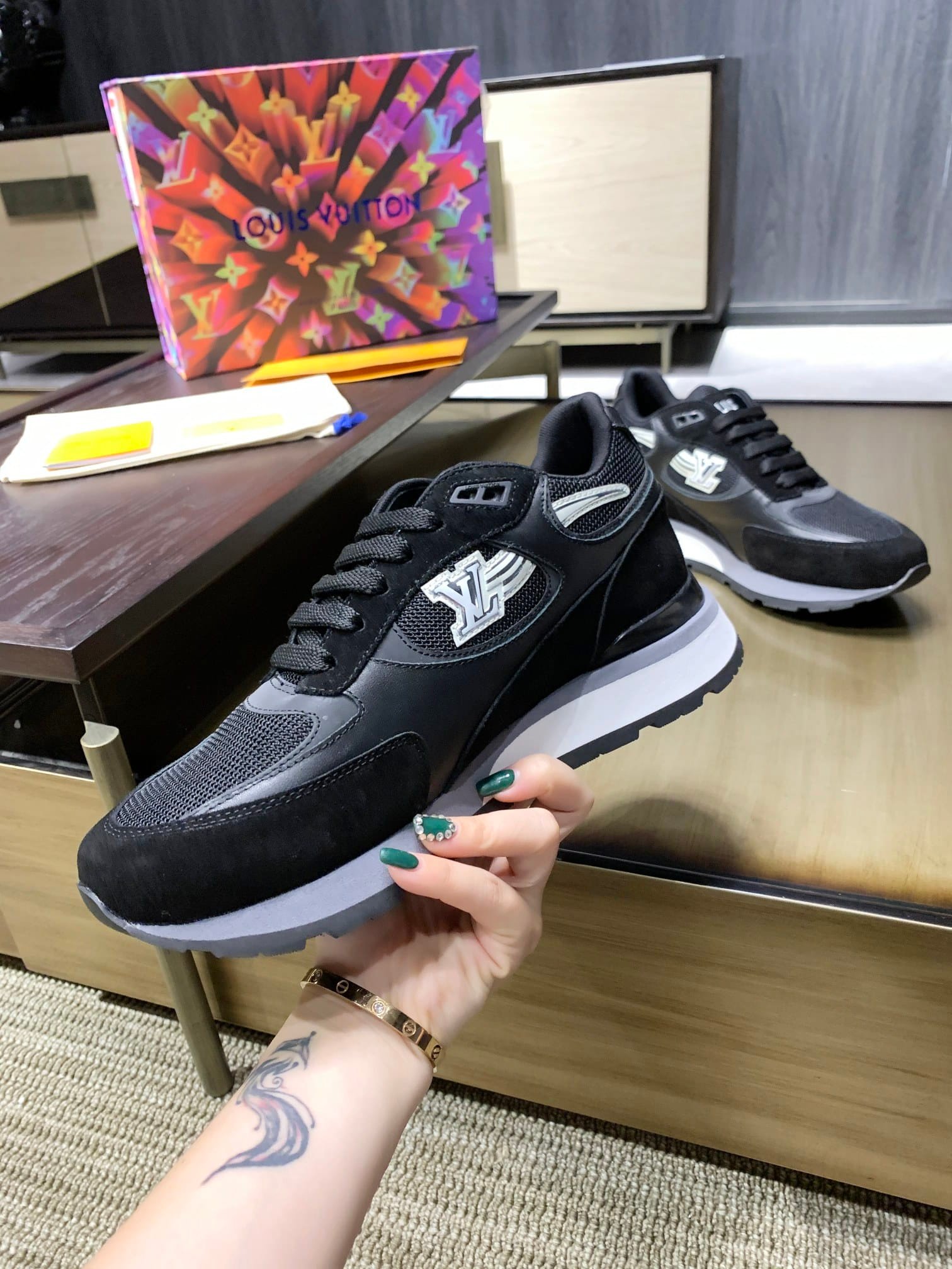 - Louis Vuitton signature on tongue