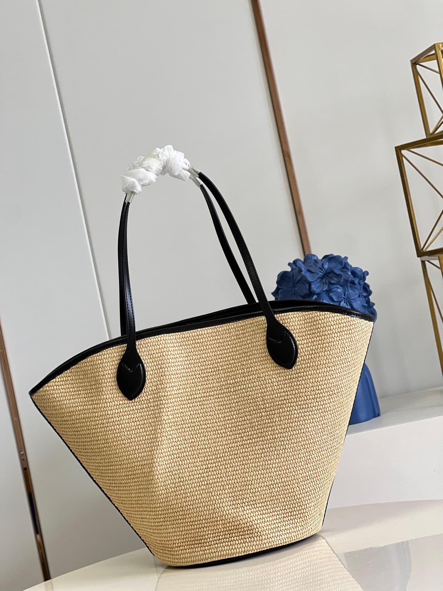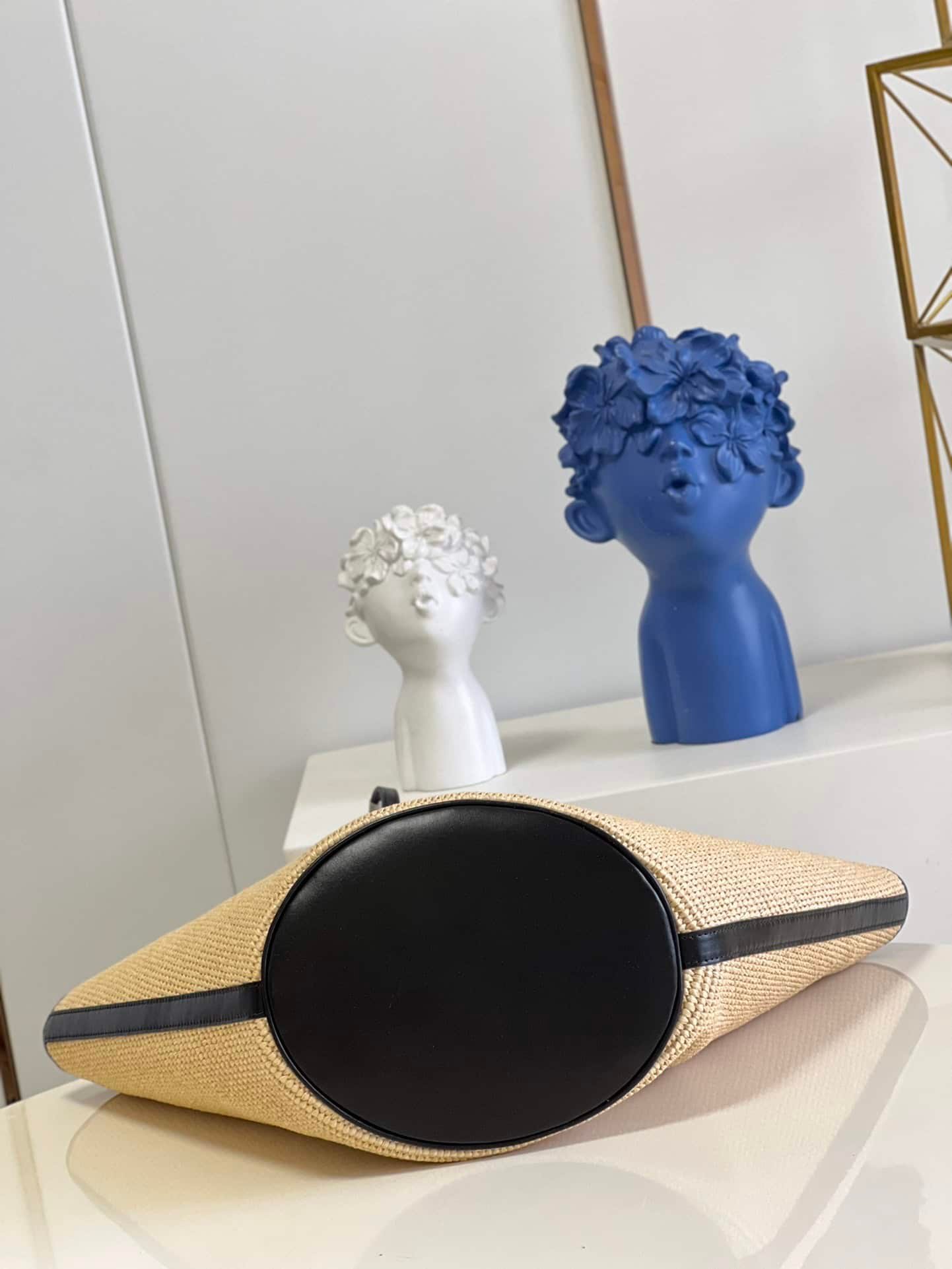 - Removable zipped raffia pouch