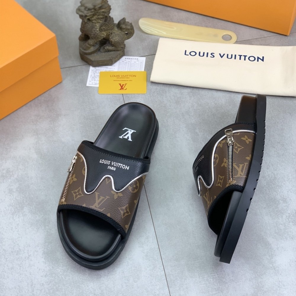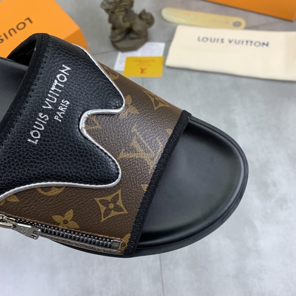 Louis Vuitton Velcro Slippers Lock Edge Brown