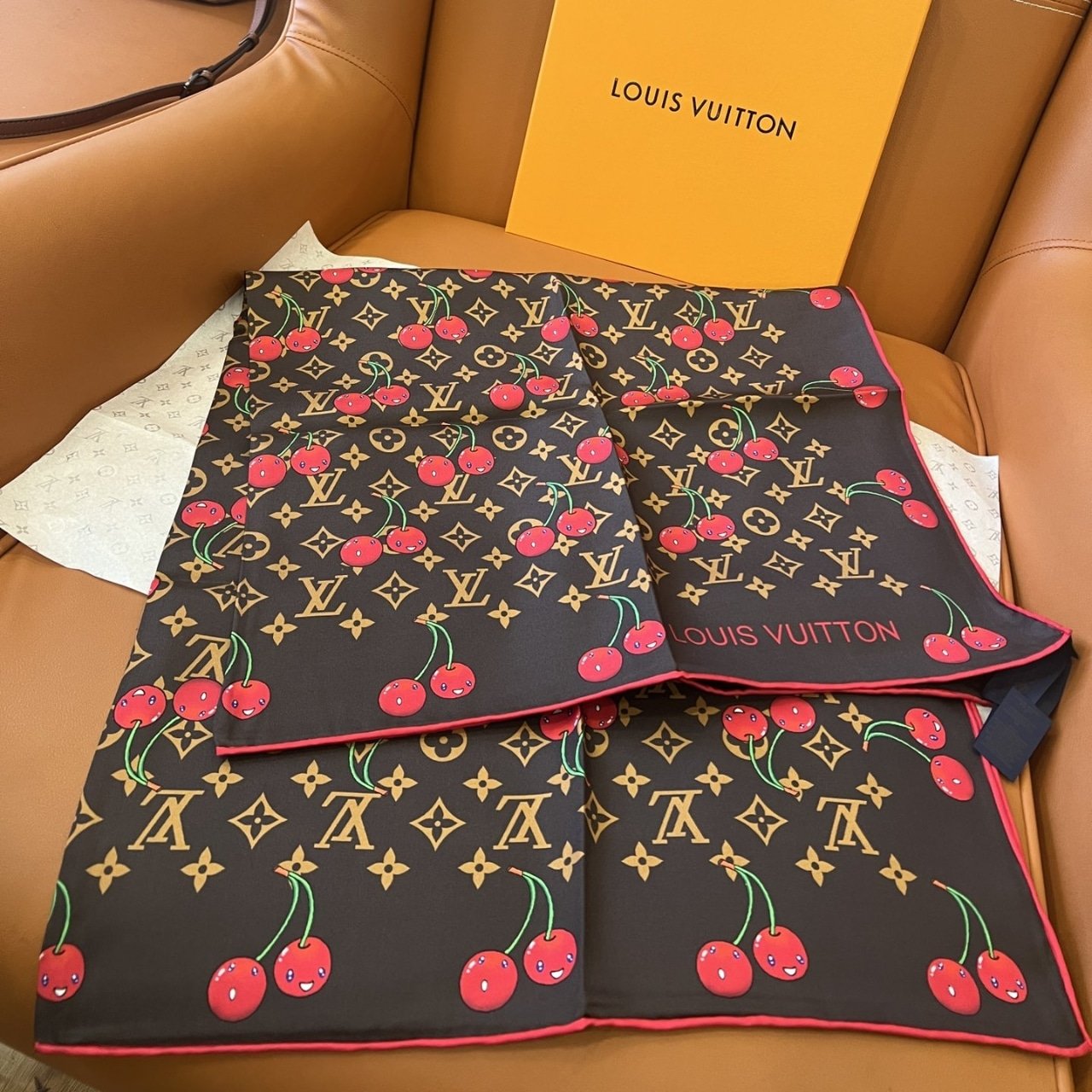 Be the first to review “Louis Vuitton X Takashi Murakami Monogram Cerise Square 90 Brown 90Cm M96094” Cancel reply