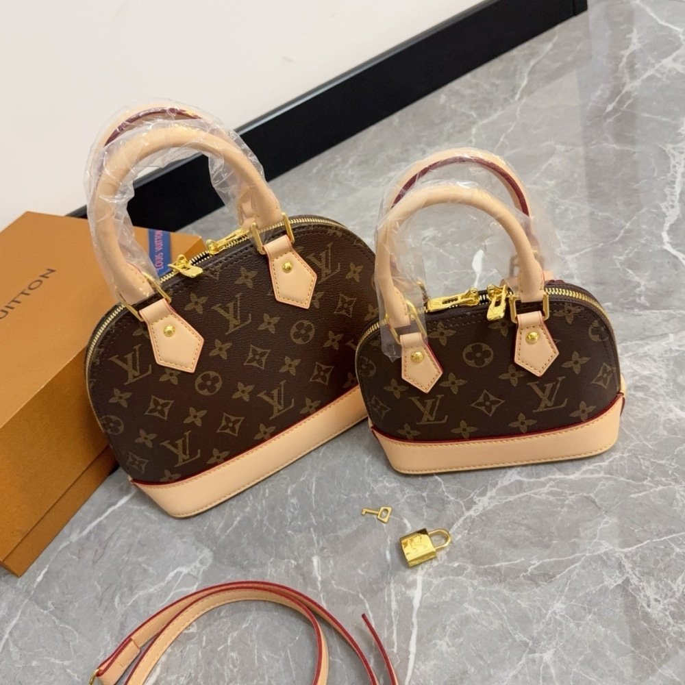 Designed in bijou proportions, the playful spirit of the Nano Alma is elevated with a whimsical cherry motif from the second edition of the Louis Vuitton x Murakami collection. It projects classic House codes in Monogram coated canvas finished with leather trims, including a top handle and removable adjustable strap for multiple carry options. The inside accommodates daily essentials including a compact wallet and a large smartphone.