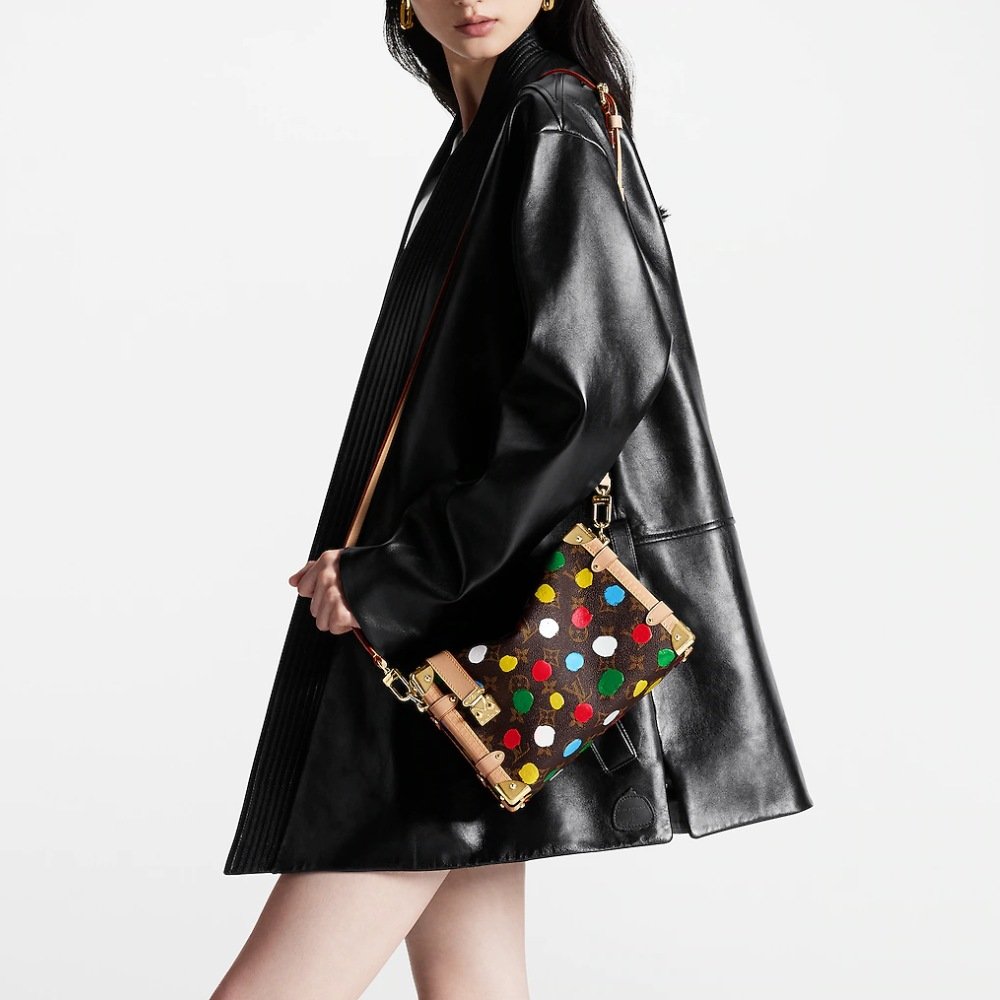 For the exclusive new Louis Vuitton x Yayoi Kusama collaboration, the LVxYK Side Trunk features an eye-catching motif symbolic of the world-renowned Japanese artist’s work. Mesmerizing dotted patterns have been a signature theme in her paintings, sculptures and installations since she emerged as an avant-garde pioneer in the 1960s – like these multicolored dots screen-printed with a 3D effect on Monogram canvas.