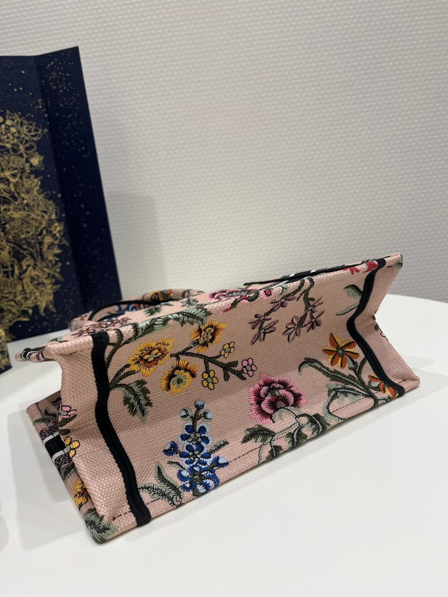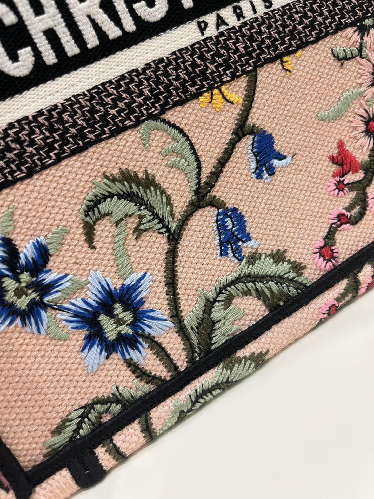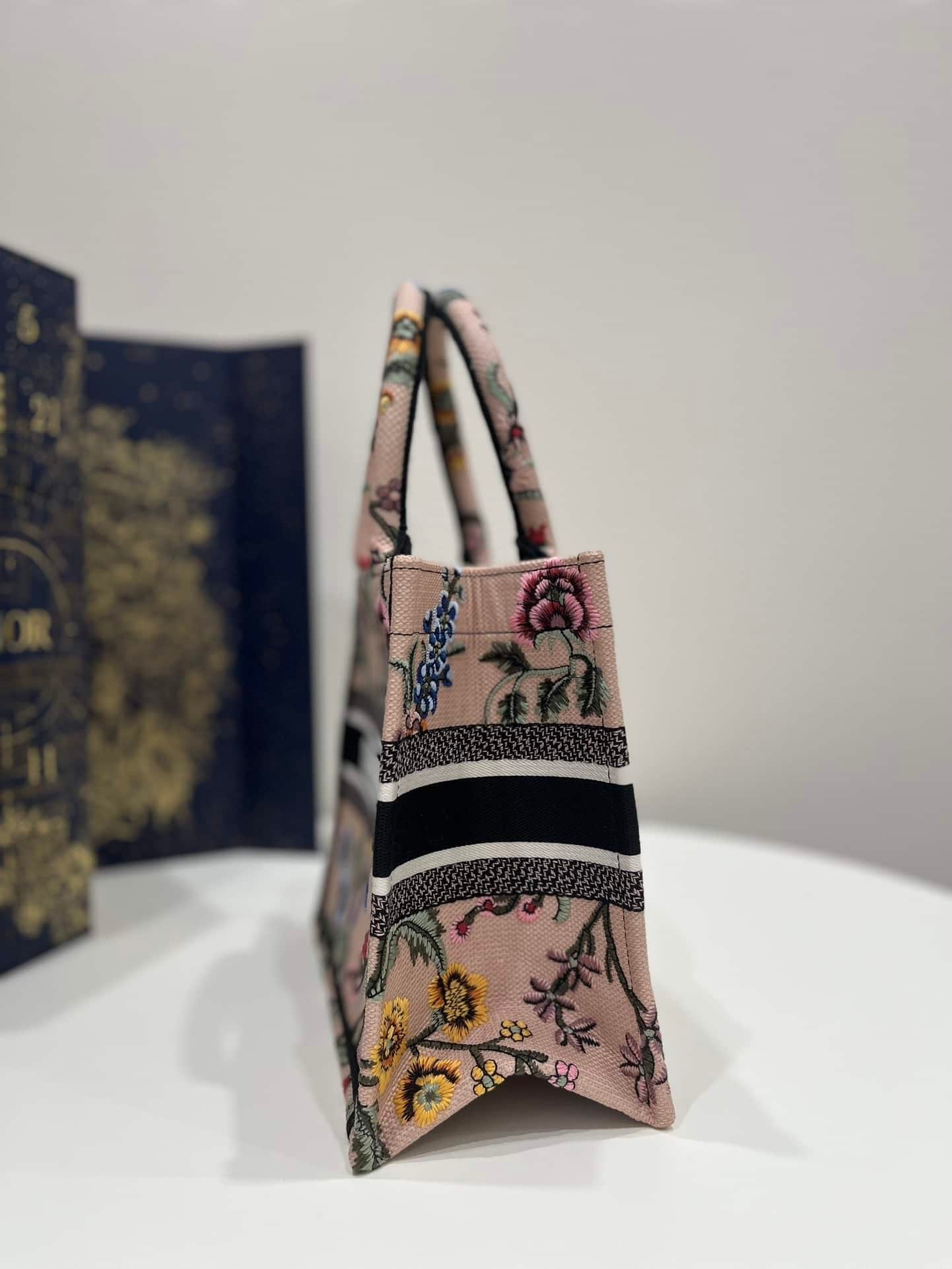 Introduced by Maria Grazia Chiuri, Creative Director of Christian Dior, the Large Dior Book Tote Bag has become a staple of the Dior aesthetic. Designed to hold all daily essentials, the style is fully embroidered with a multicolor Dior Petites Fleurs motif, a romantic and vibrant homage to Mr. Dior’s passion for florals. Adorned with the Christian Dior Paris signature on the front, the medium tote exemplifies the House’s signature savoir-faire and may be carried by hand.
