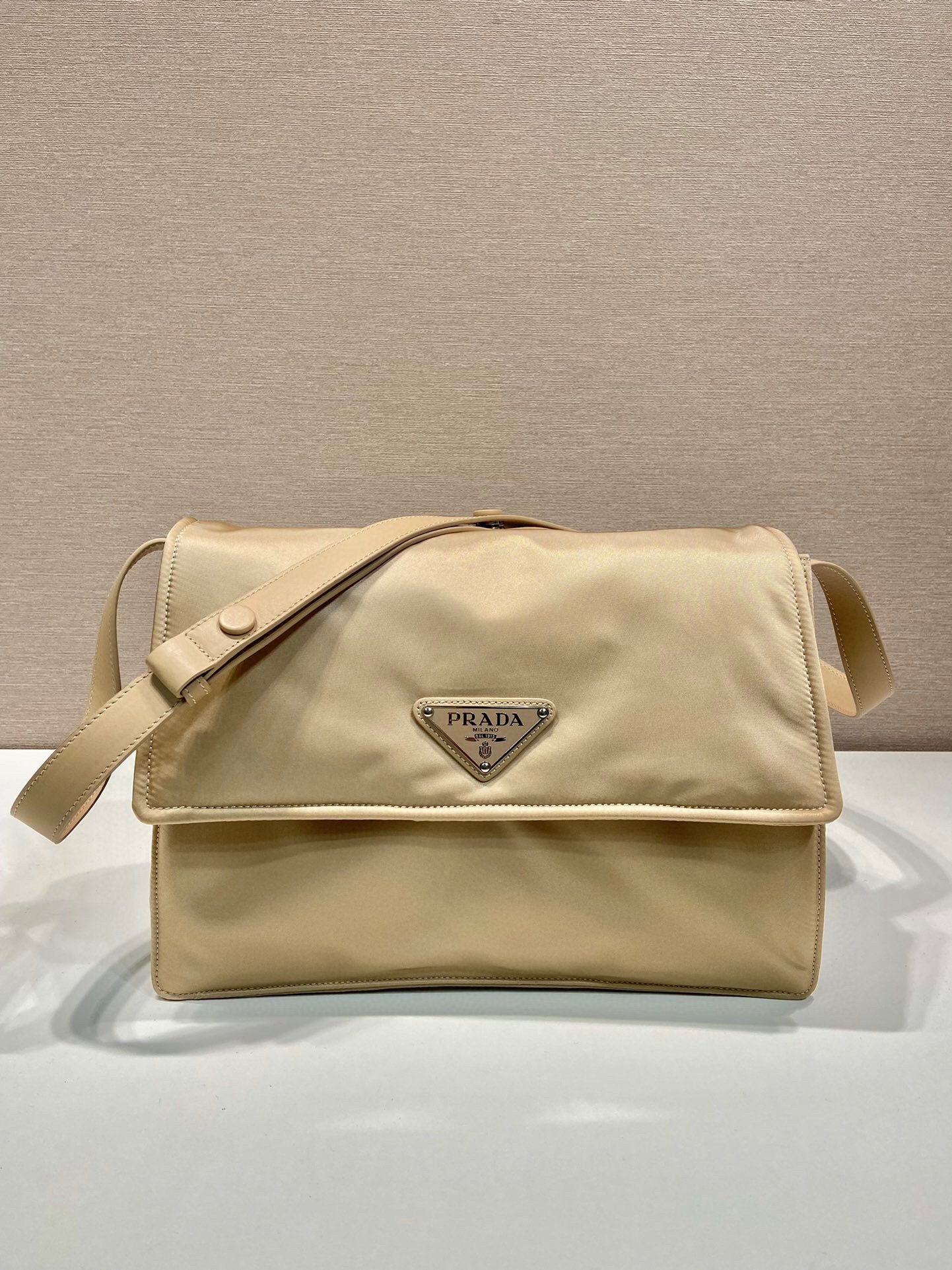 Prada Medium Padded Shoulder Bag In Beige