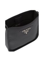The sleek design of this leather mini shoulder bag is emphasized on the front by the metal triangle logo that adds an iconic note