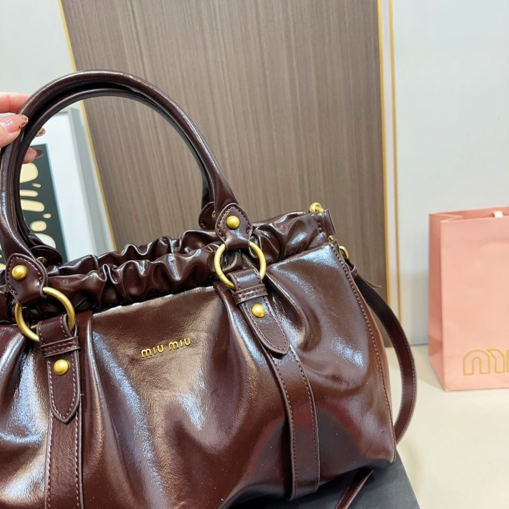 Miu Miu Side Ribbon 2Way Handbag Burgundy 33Cm