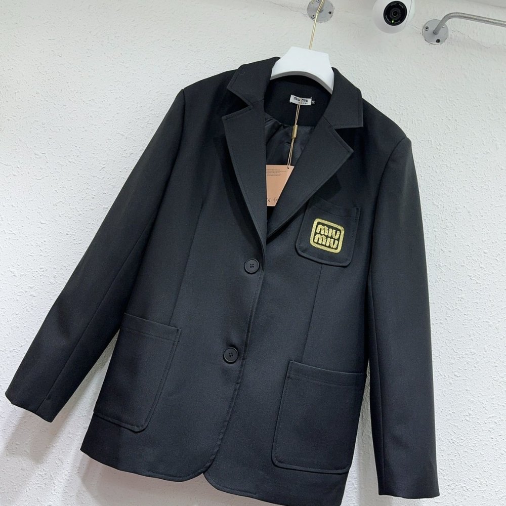 Miumiu Single Breasted Mohair Jacket Black Yellow Gold Mh1927 12I1 F0R84 S Am1