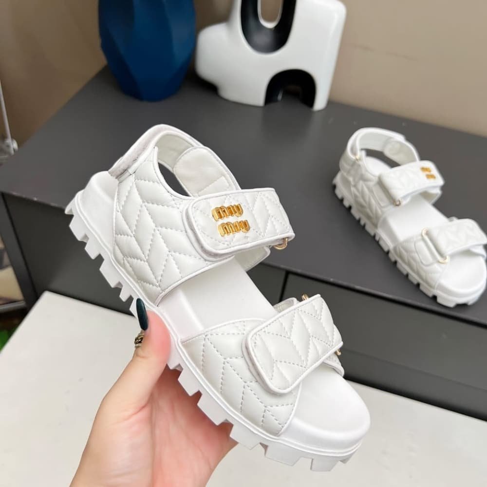 Miumiu Sporty Matelasse Nappa Leather Sandals White 5X135E 88T F0009 F 010