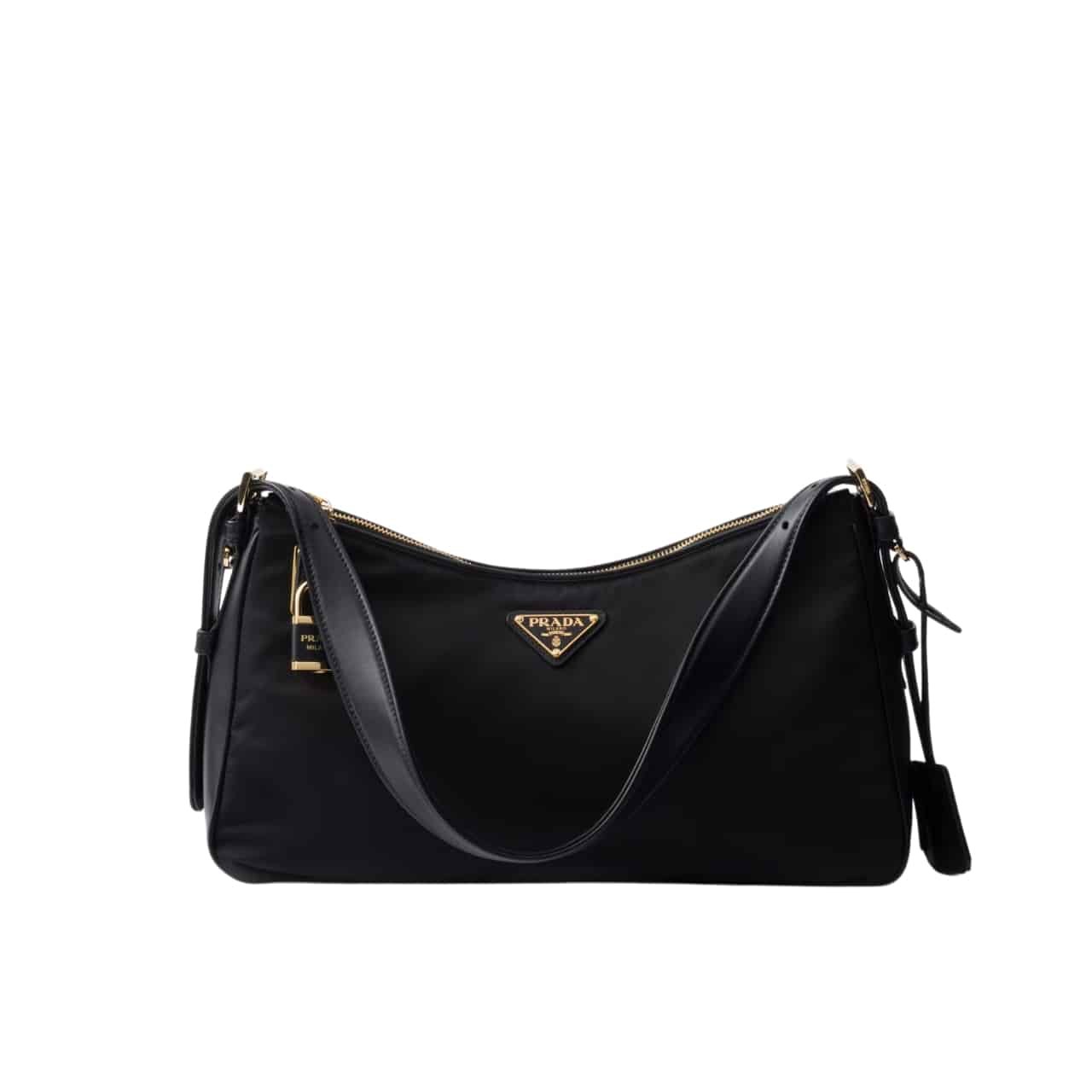 Prada Aimée Large Re Nylon Shoulder Bag With Padlock Black 34Cm 1Bc232 2C8Q F0002 V Odo