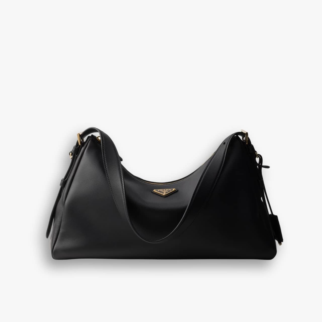 The sophisticated minimalism of the ’90s inspires the new Prada Aimée bag. The design evokes the instinctive gesture of holding a bag with its soft silhouette, created for effortless wear on the shoulders or cross-body.