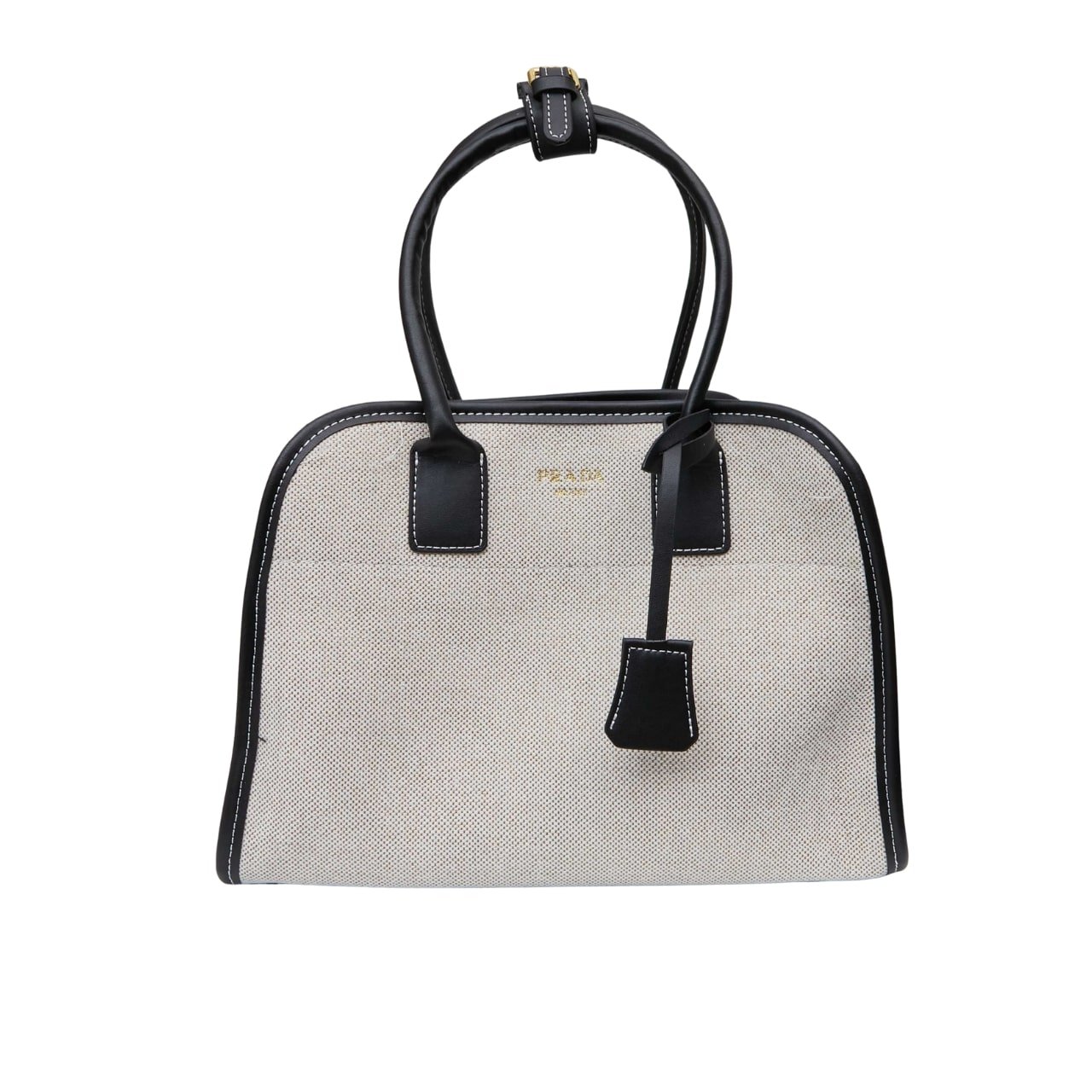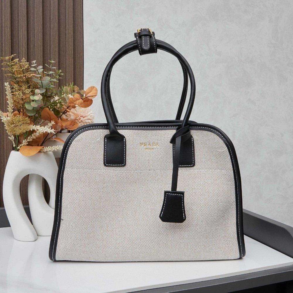 Prada Medium Blend And Leather Tote Bag Black 33Cm 1Bg572 2Hja F0I55 V Ooz