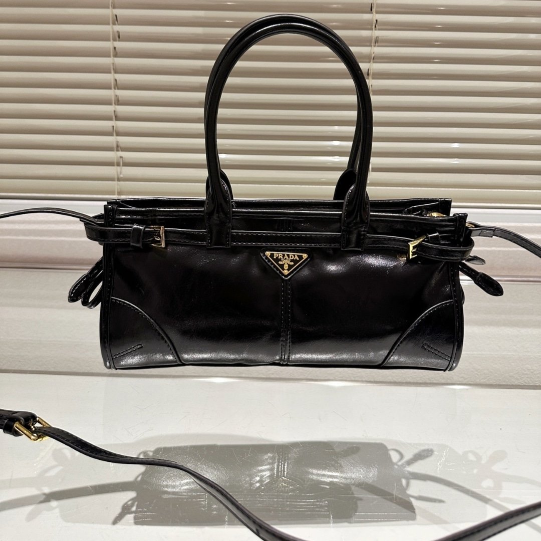 Prada Medium Leather Handbag Black 32Cm 1Ba426 2Cyr F0002 V Moo