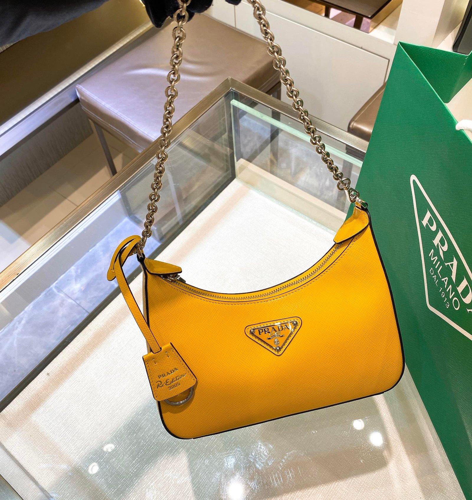 Prada Re-Edition 2005 Re-Nylon Mini Bag Yellow For Women, Women’s Bags 8.6in/22cm
