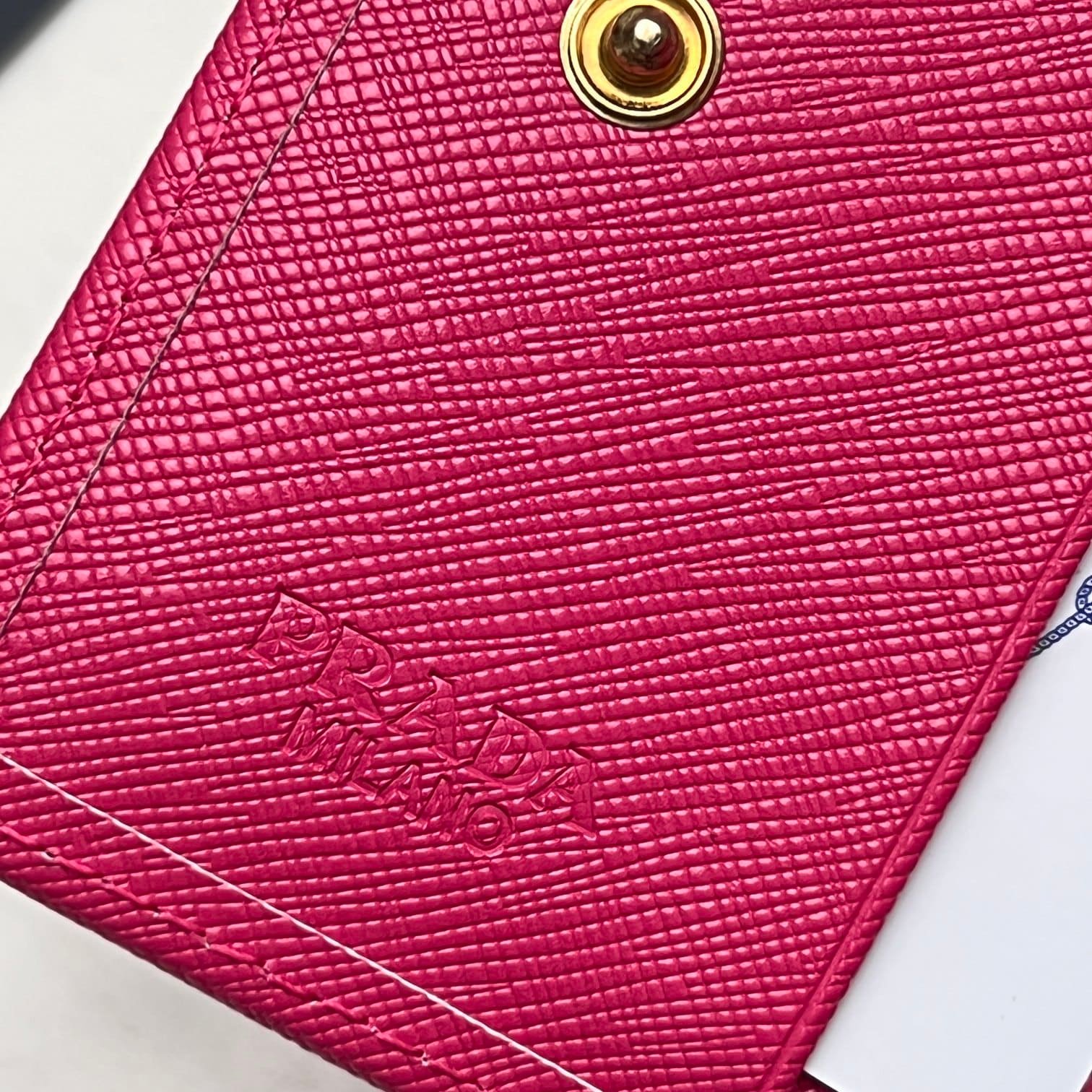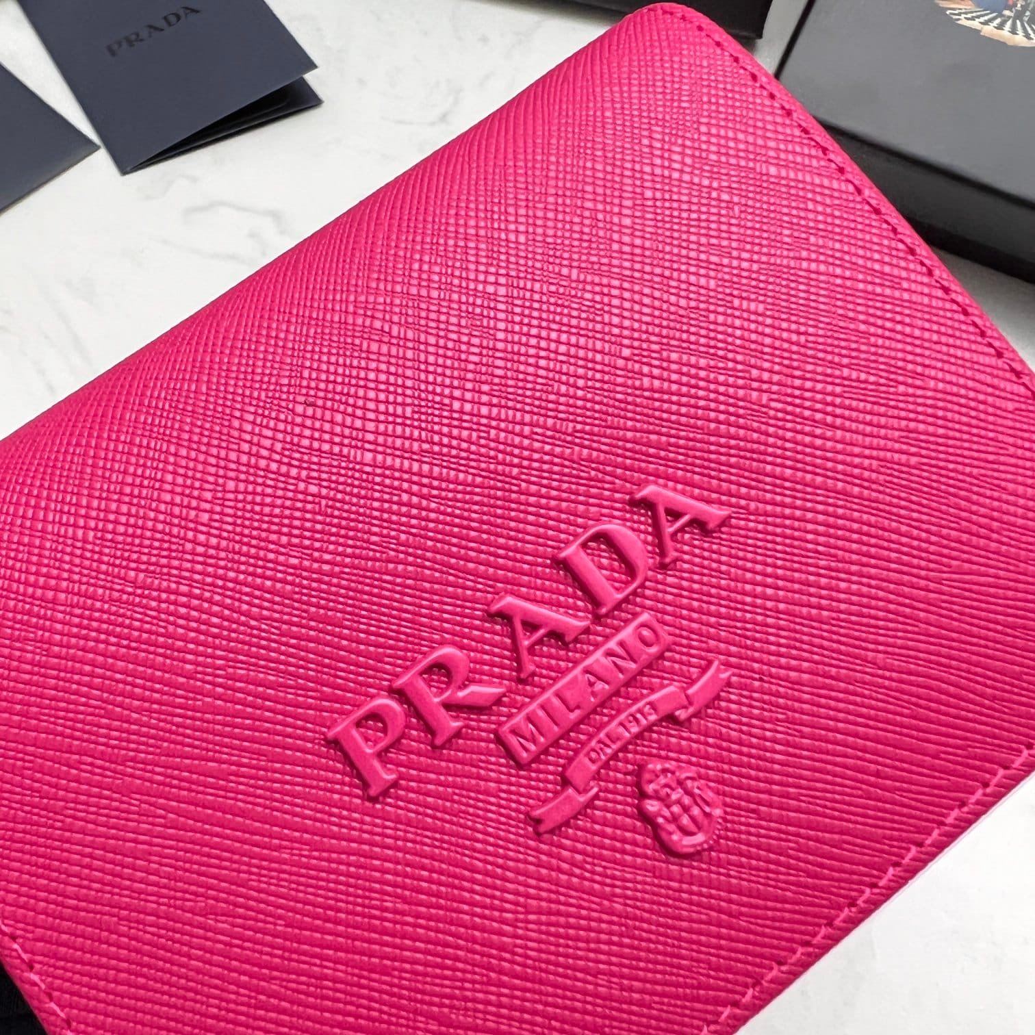 Prada Saffiano Monochrome Flap Small Wallet Full Dark Pink 10Cm 1Mv204 Qwa F0002
