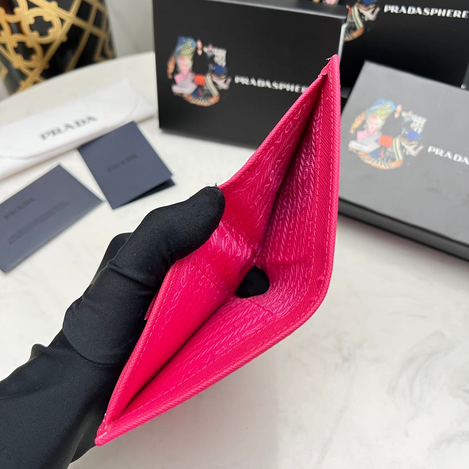 - Moire and Saffiano leather lining