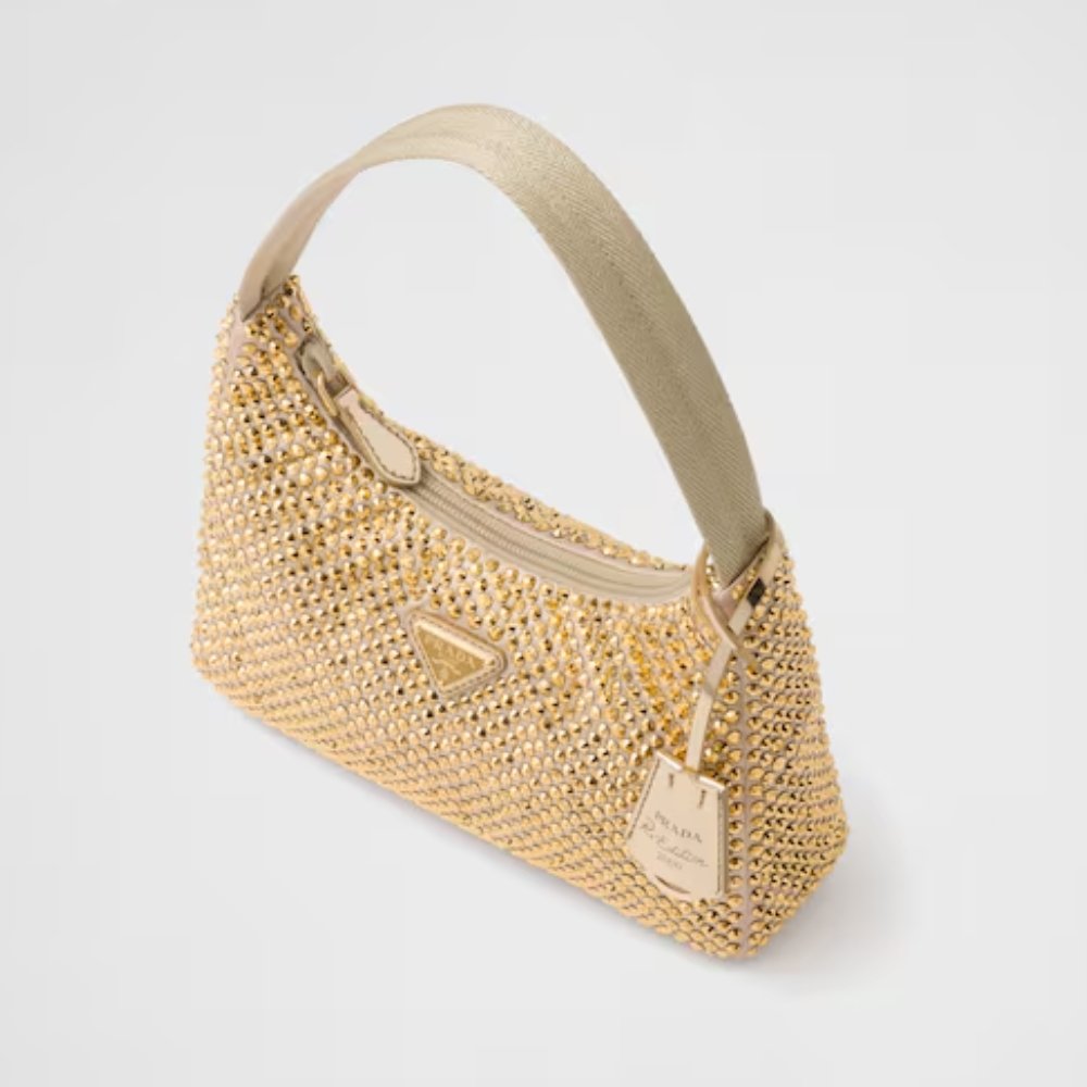 Replica 1:1 – Prada Satin With Crystals Platinum 21Cm