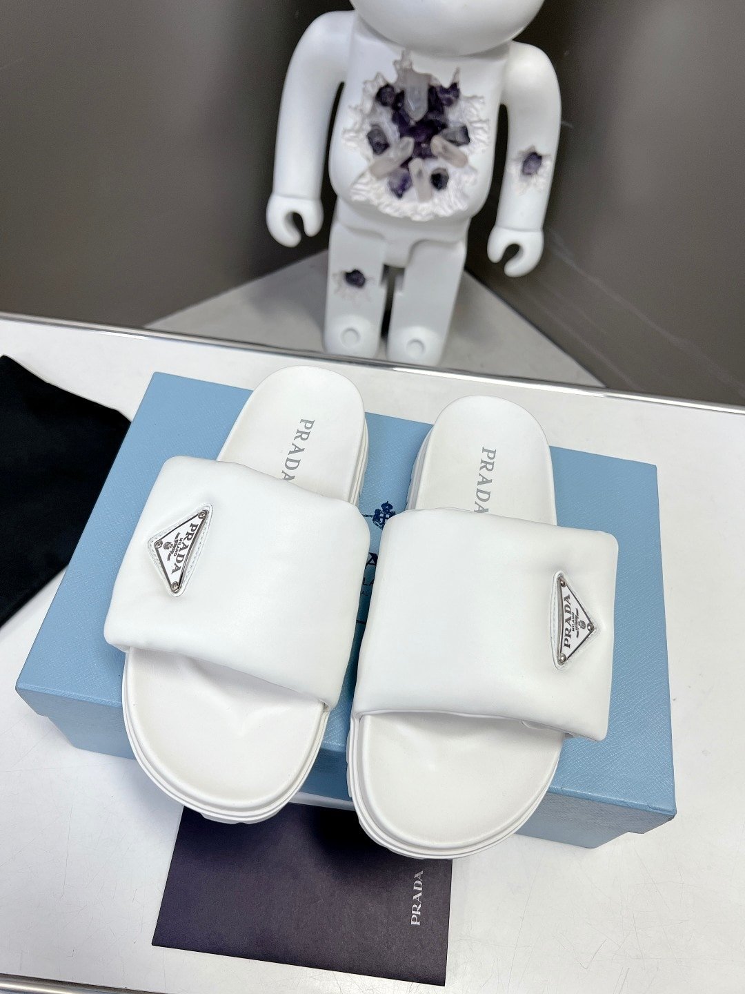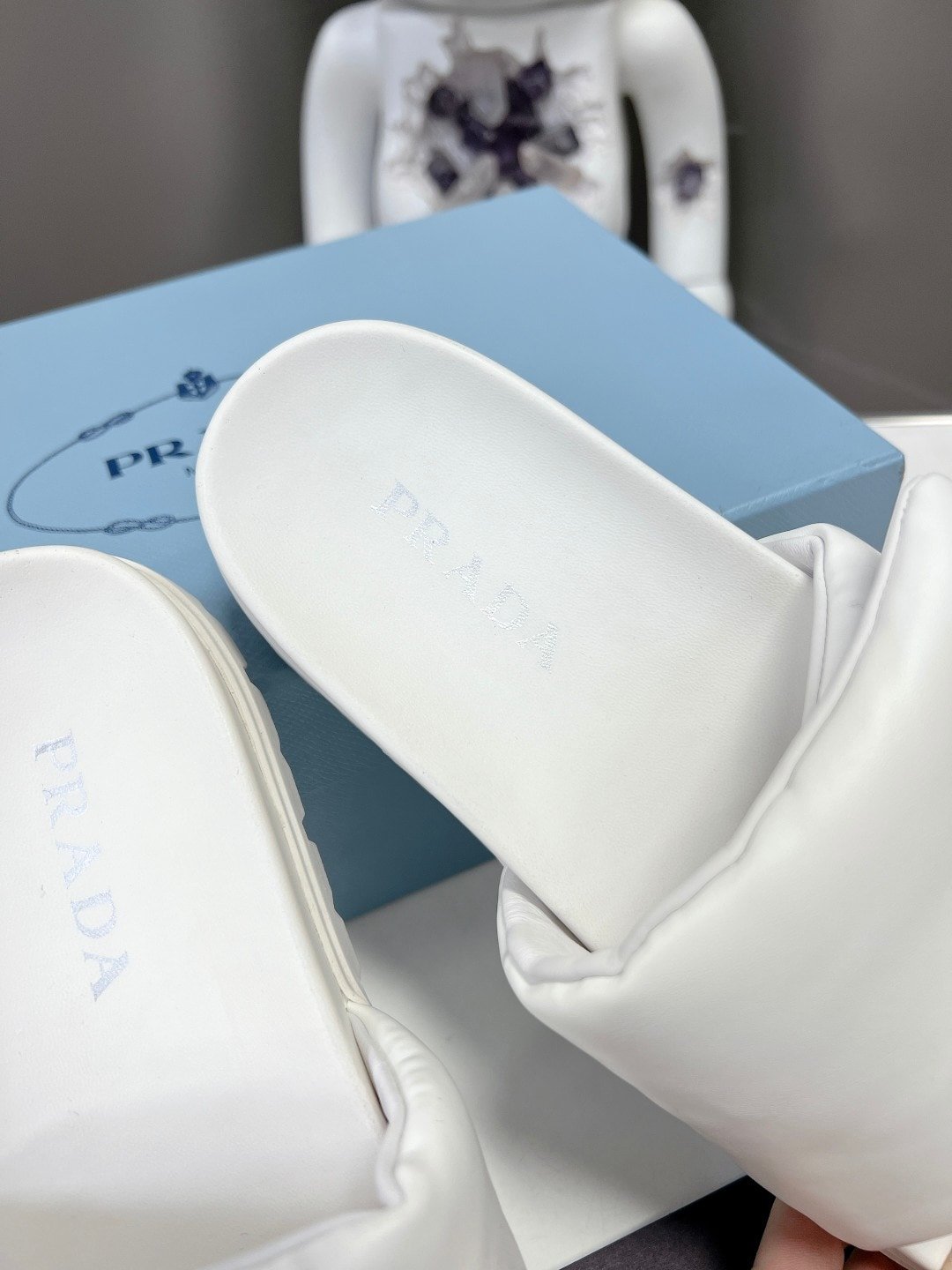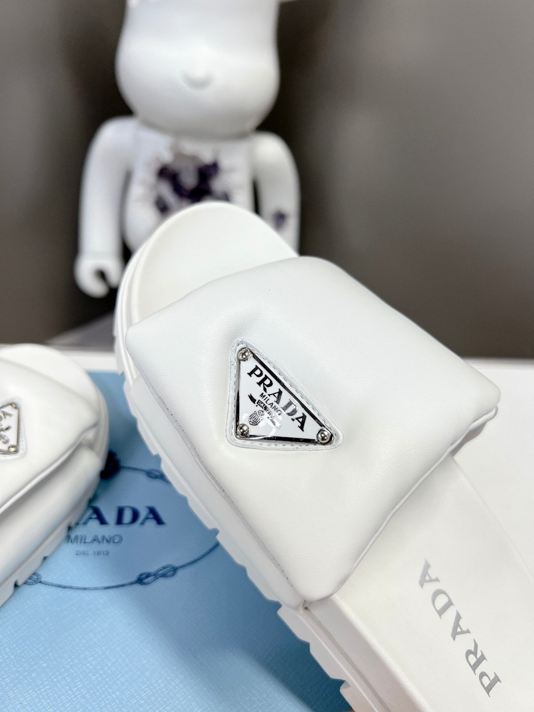 Prada Soft Padded Nappa Leather Slides White 1Xx6482Dl8F0009F020