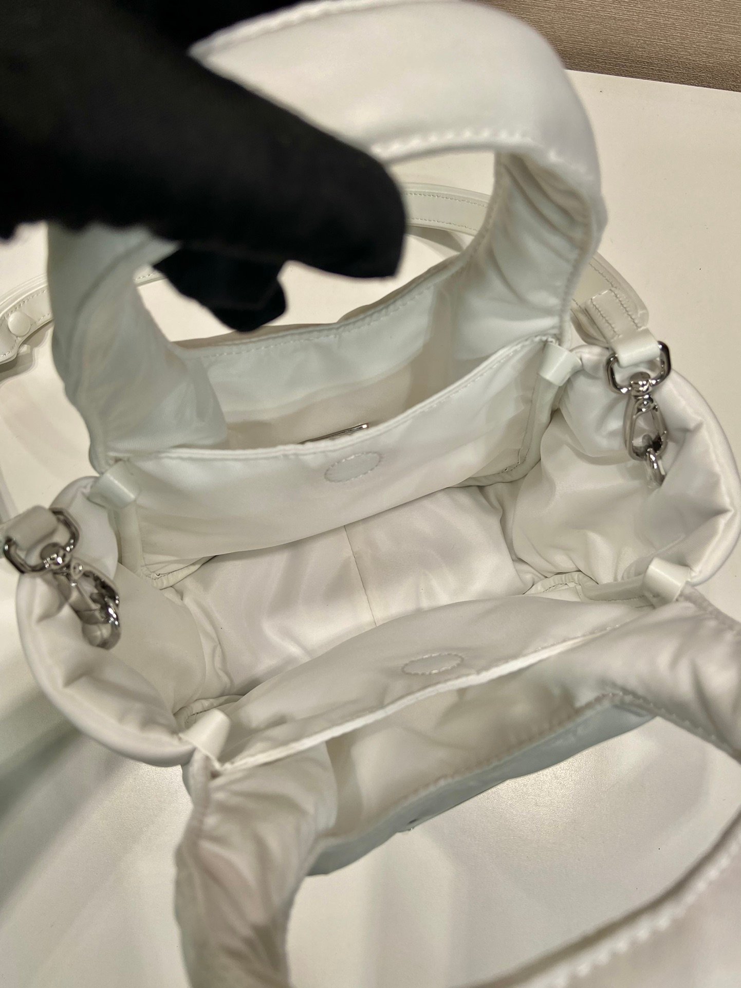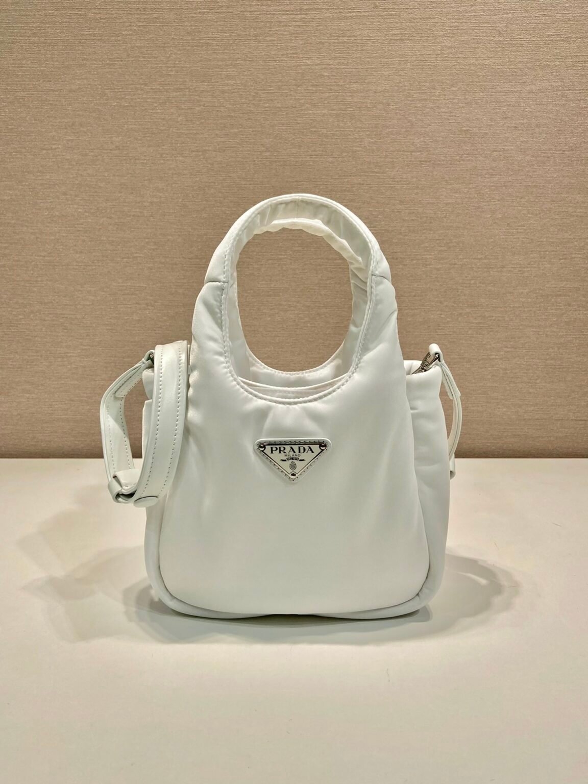 Prada Soft Padded Re-Nylon Mini-Bag White/Pink/Beige – 1BA359_RCCJ_F0009_V_OVM