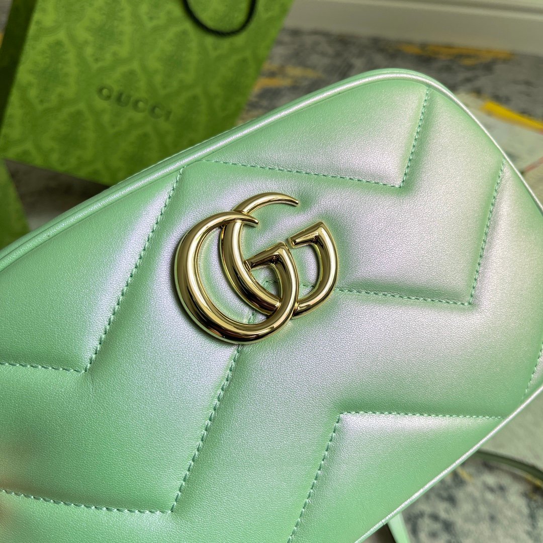 1:1 Replica GG MARMOUNT SMALL SHOULDER BAG P Green iridescent quilted chevron leather Exclusive For Women 447632 AAC2V 3404