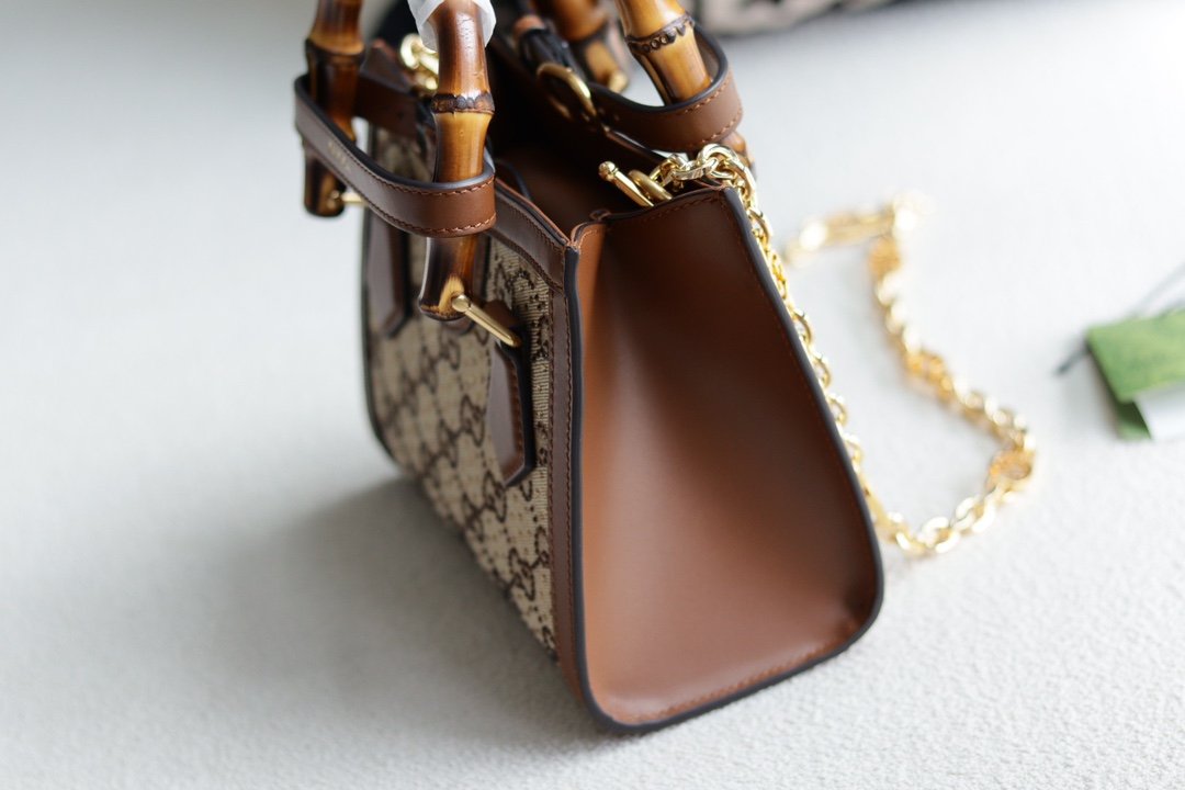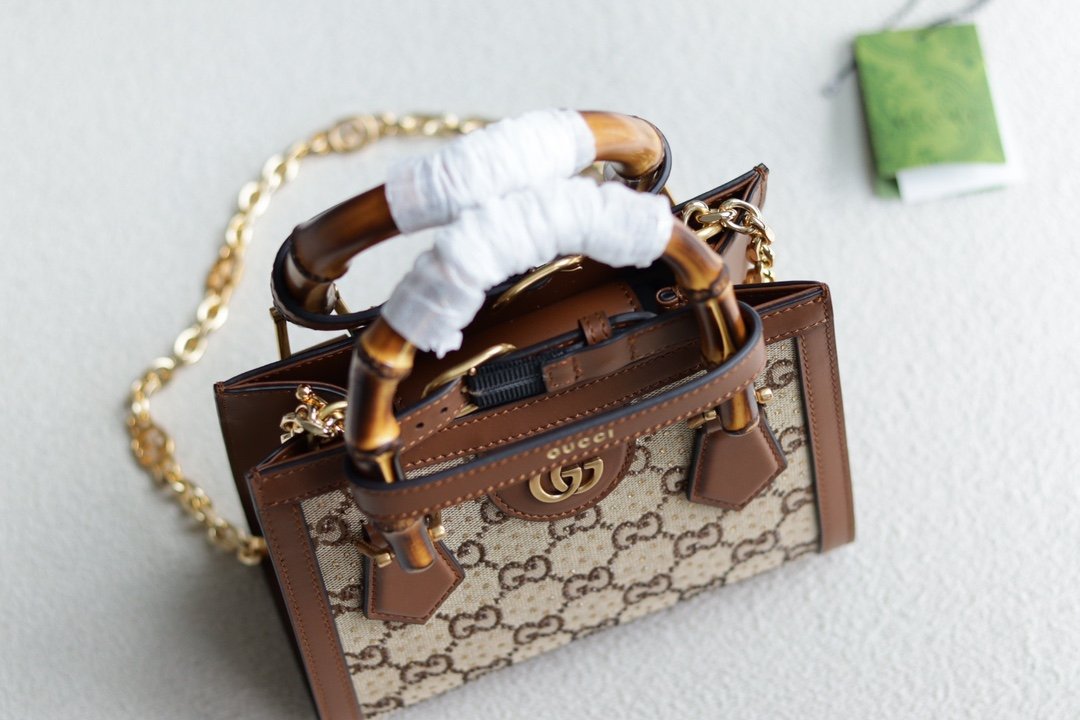 1:1 Replica GUCCI DIANA MINI TOTE BAG P Camel and ebony GG canvas with crystals Exclusive For Women 707449 21HRG 2687