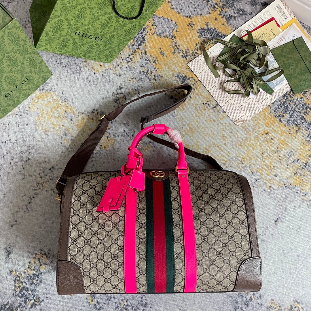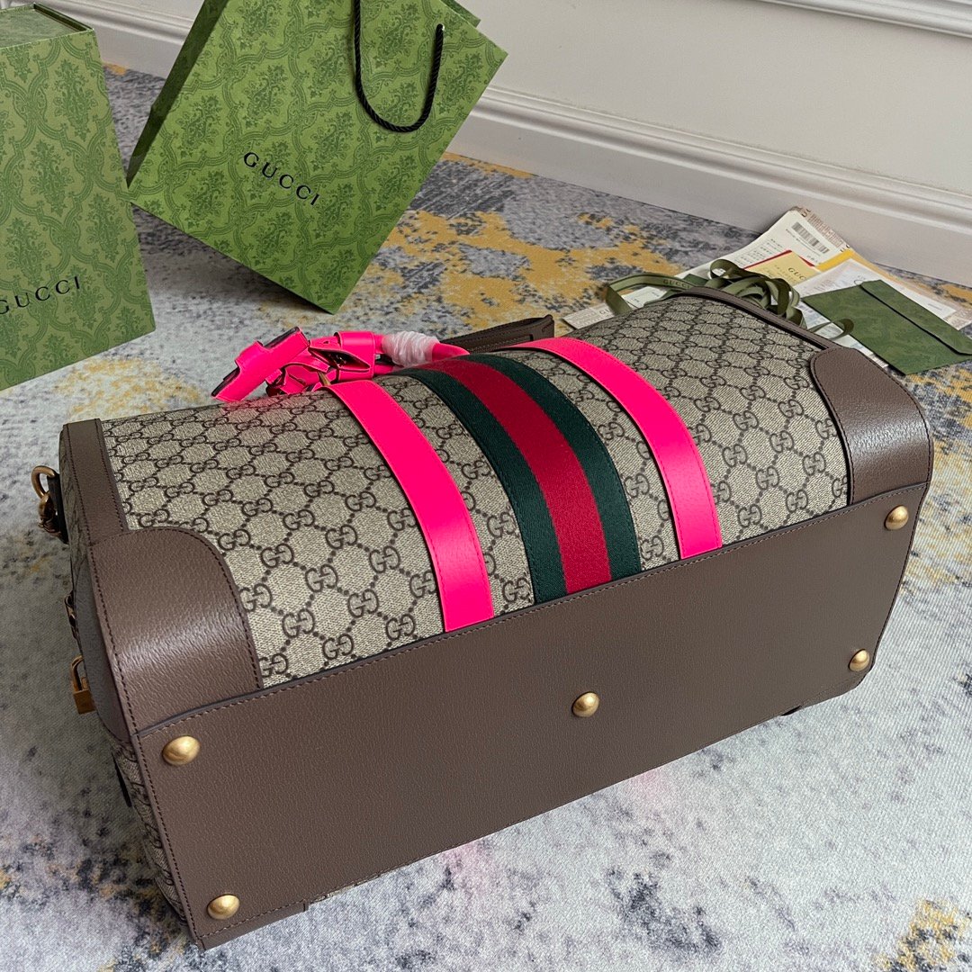 1:1 Replica GUCCI SAVOY MEDIUM DUFFLE BAG P Beige and ebony GG Supreme canvas Exclusive For Women 724642 FADHS 9755
