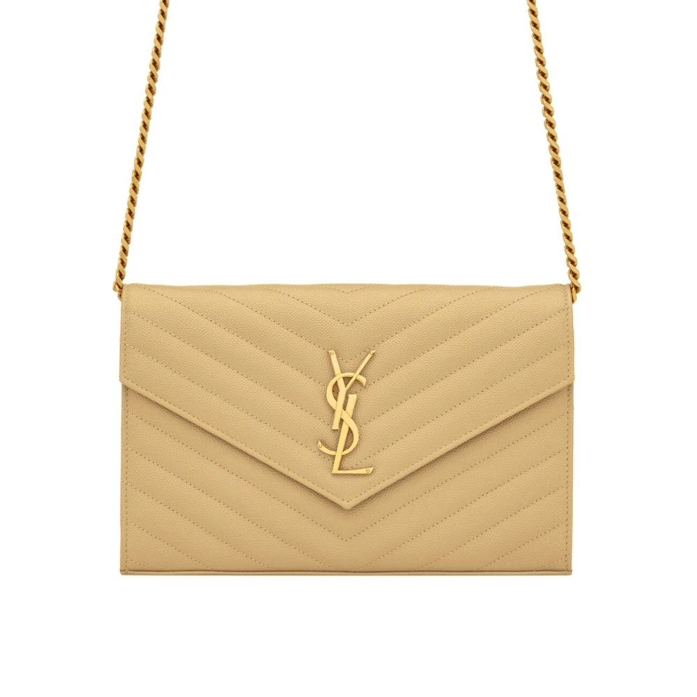 Saint Laurent Classic Cassandre Chain Wallet In Grain De Poudre Leather Beige 22Cm 377828Bow012721
