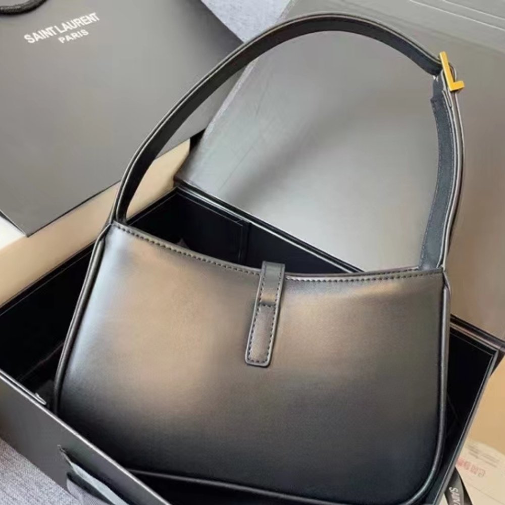 Chiếc túi Saint Laurent Le 5 À 7 Hobo màu đen là sự kết hợp nổi bật giữa vẻ đẹp hiện đại và thiết kế cổ điển, được làm từ da mịn mang đến vẻ ngoài tinh tế. Với tab da sang trọng gắn logo Cassandre biểu tượng, chiếc túi 25cm này không chỉ đẹp mắt mà còn tiện dụng. Lớp lót suede cùng tông màu sang trọng tạo thêm sự tinh tế, biến nó thành phụ kiện hoàn hảo cho mọi dịp.