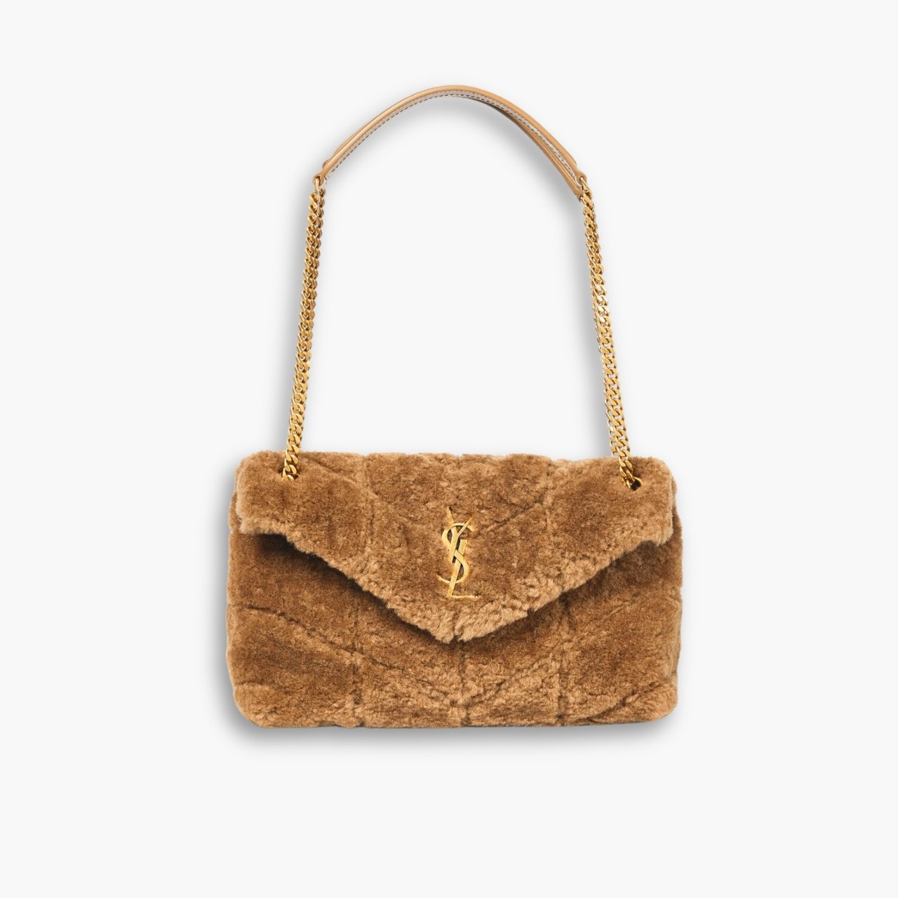 Saint Laurent Loulou Shearling Puffer Bag Brown 28cm P00589743