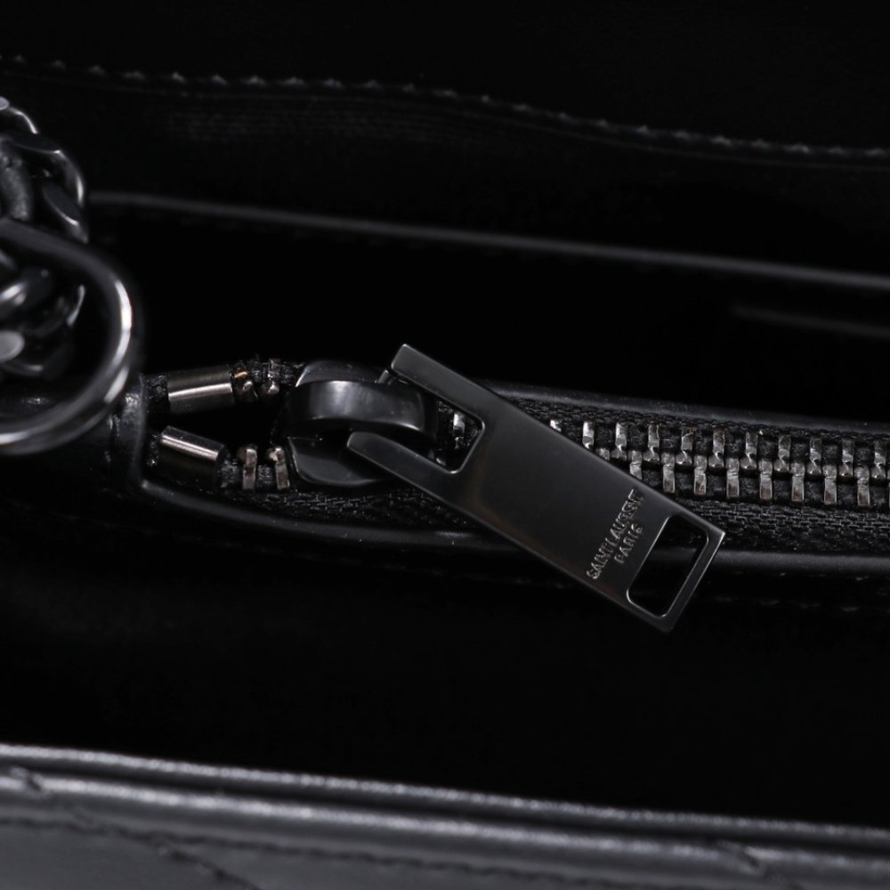 The Saint Laurent Loulou Small Bag in Back Metal (25 cm) exudes sophistication with its envelope silhouette and signature chevron quilt overstitched design. Inside, it offers two generous compartments divided by a convenient zipped pocket for effortless organization. The sliding chain enhances versatility, allowing you to wear it elegantly on your shoulder or stylishly across the body.