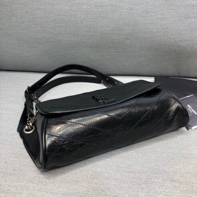 [REP 1:1] Saint Laurent Niki Medium Crinkled Shoulder Bag Black For Women 11in/28cm YSL