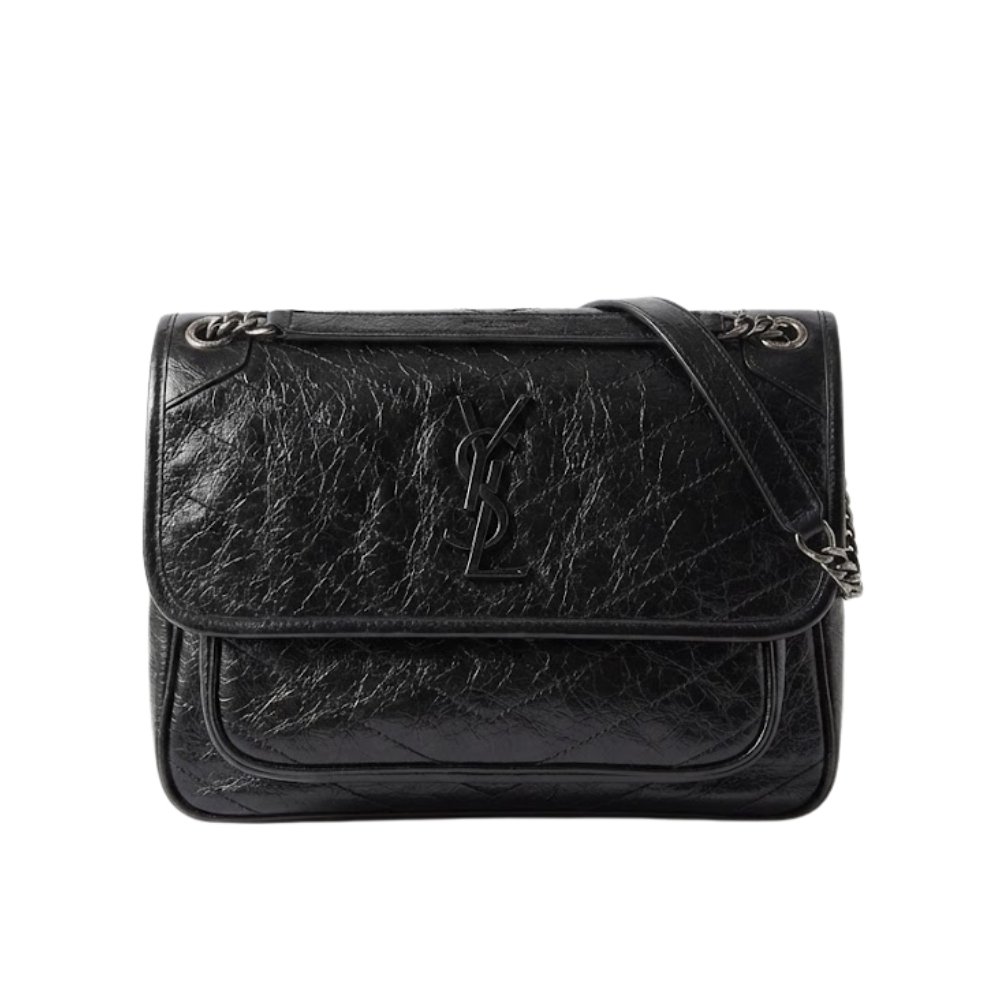 Saint Laurent Niki Medium In Vintage Leather Black With Silver Hardware 28Cm