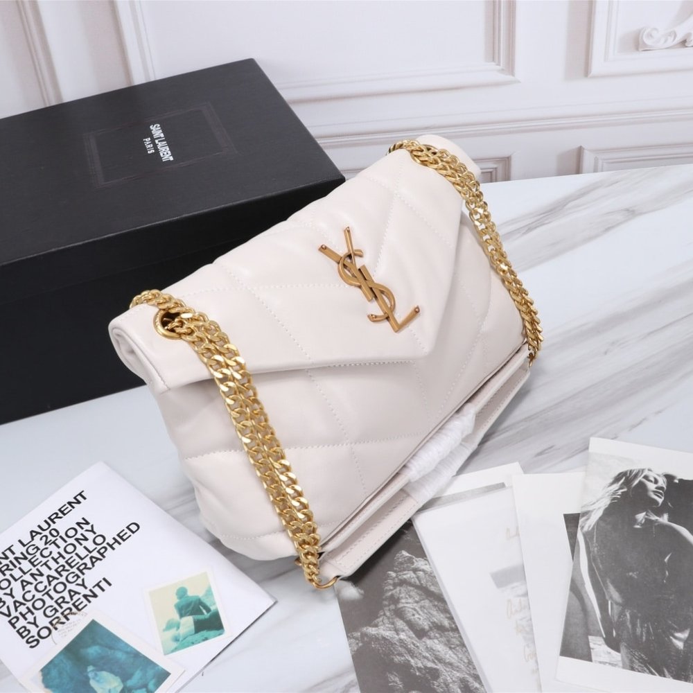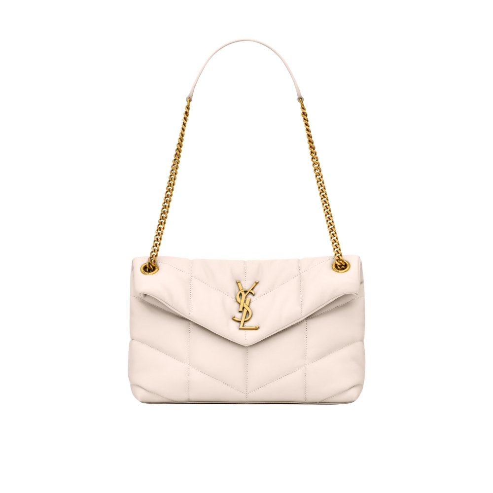 Saint Laurent Puffer Small In Leather Gold Hardware White 29Cm 5774761EL079207